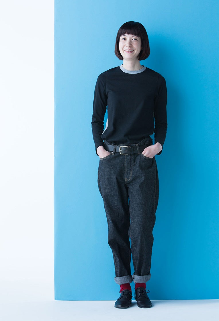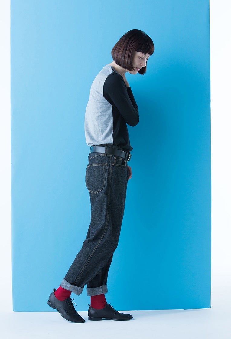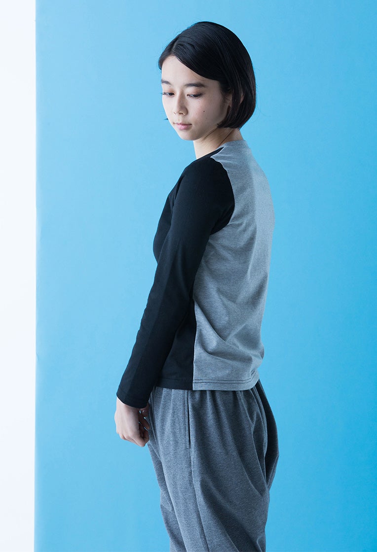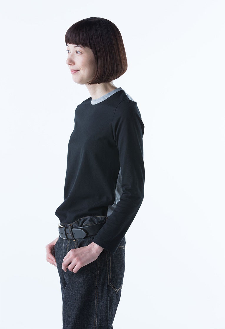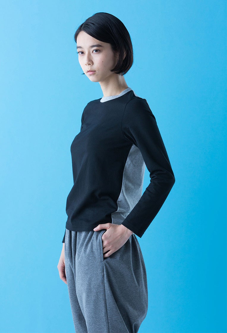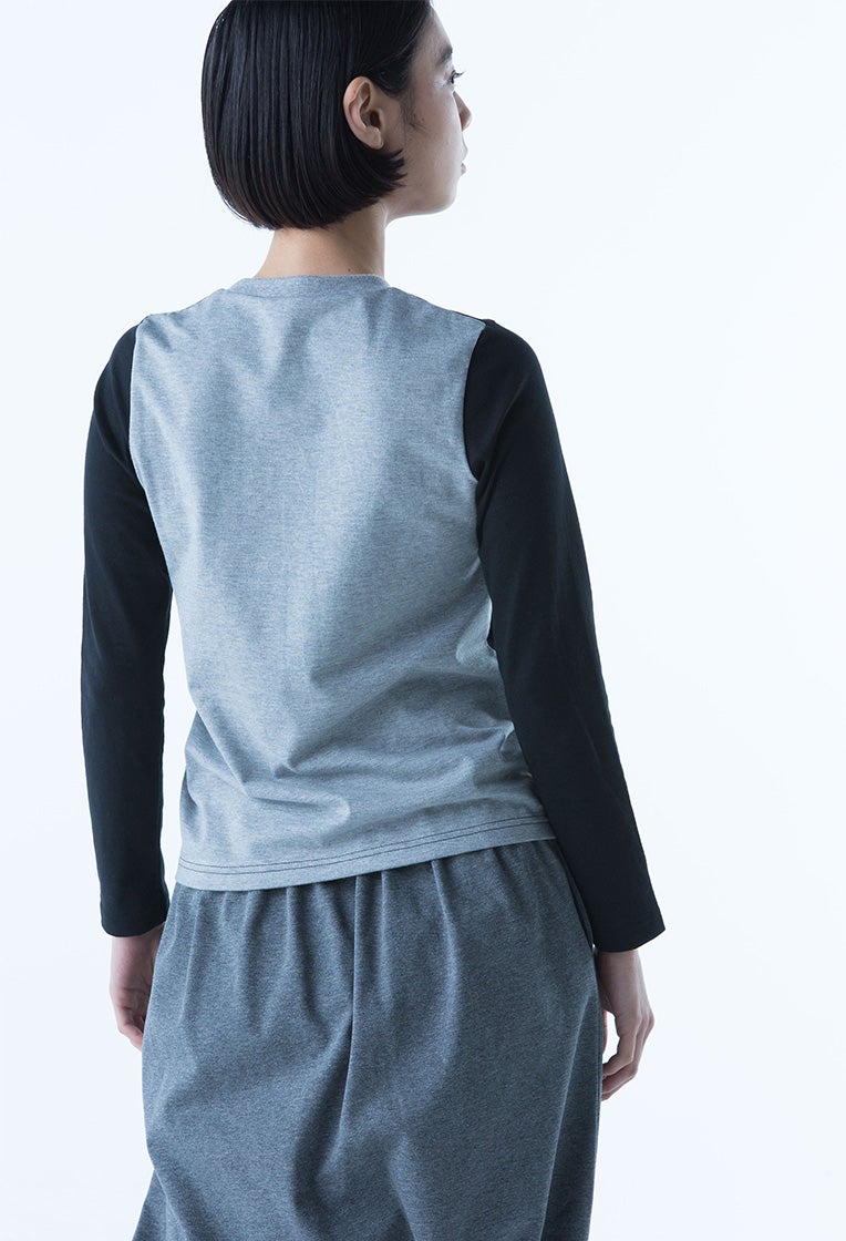 襟ぐりには、後ろ身頃の色がちらりと見えます。
