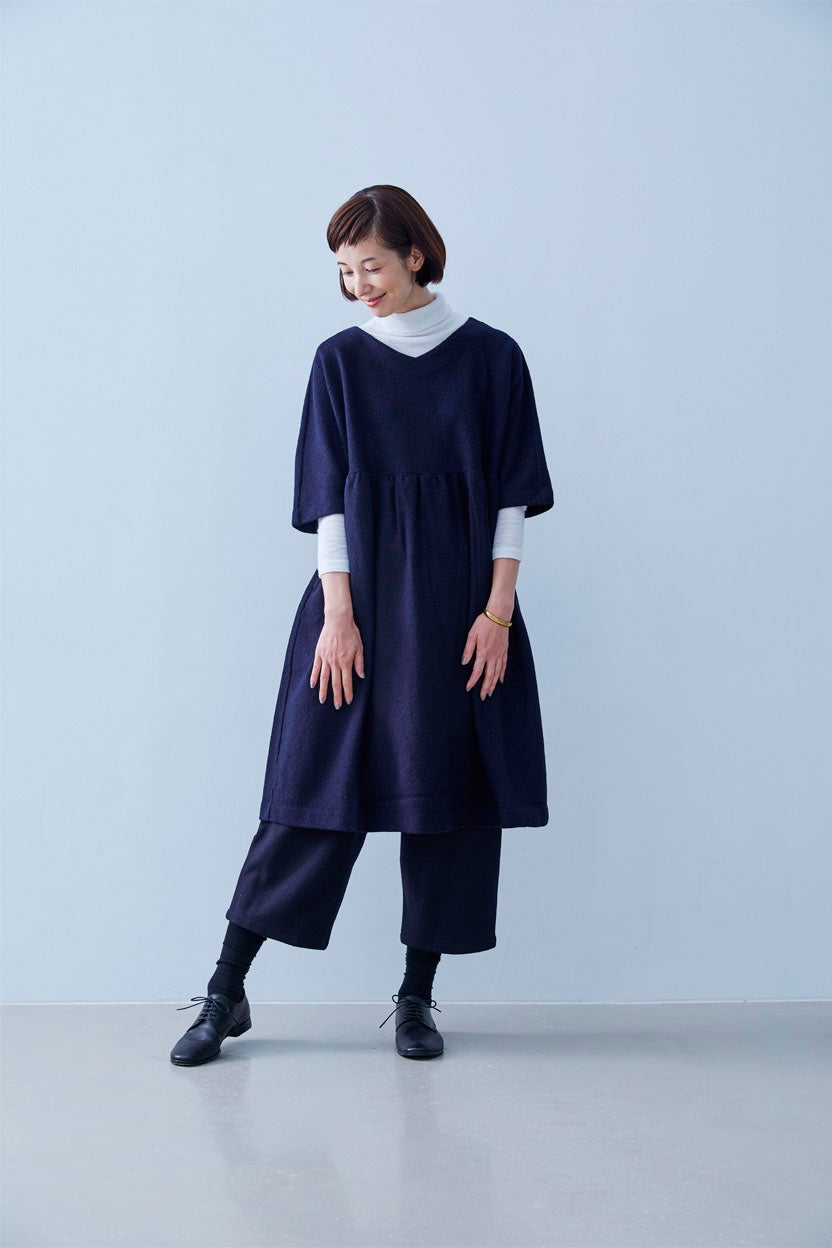 洗いをかけたウールワンピース(紺)(M)(hobonichi+a.)