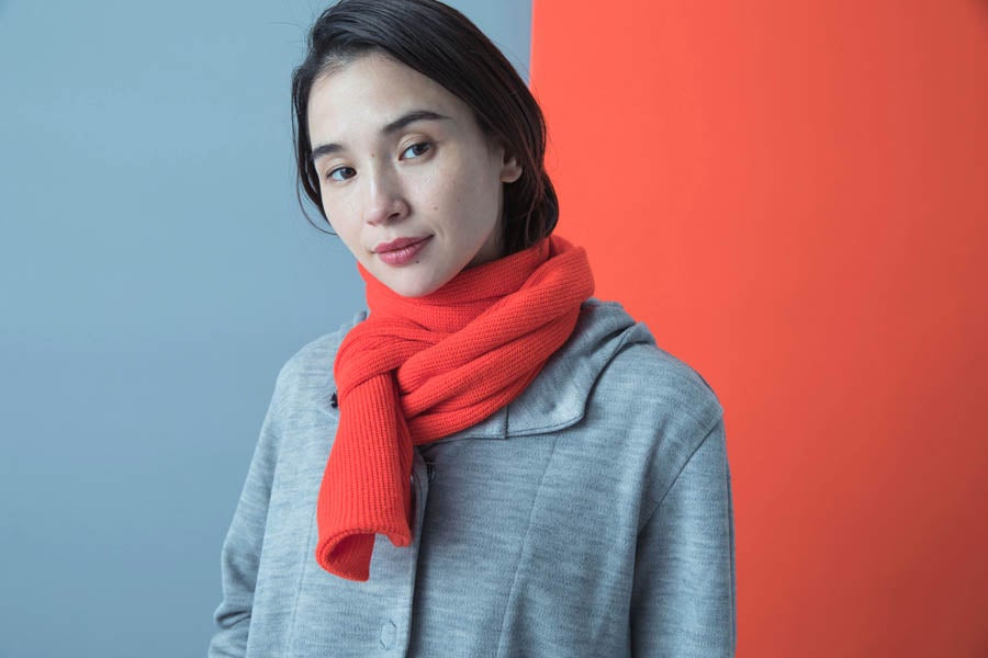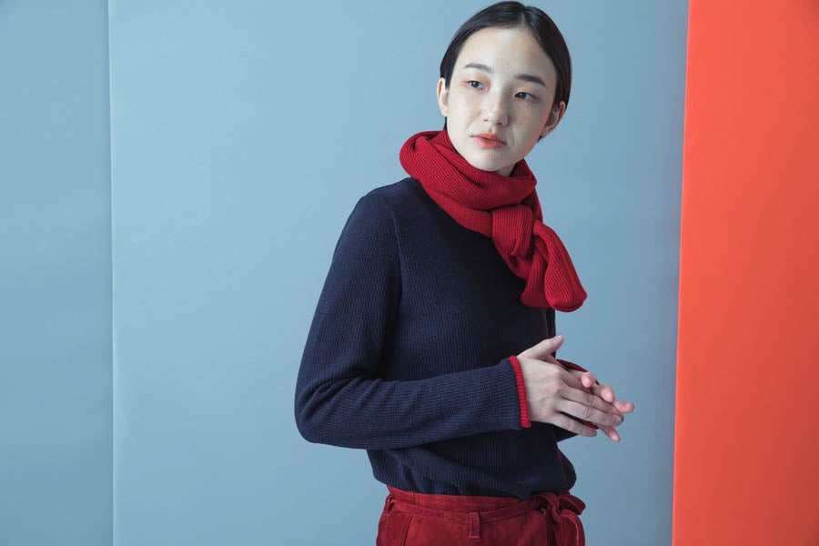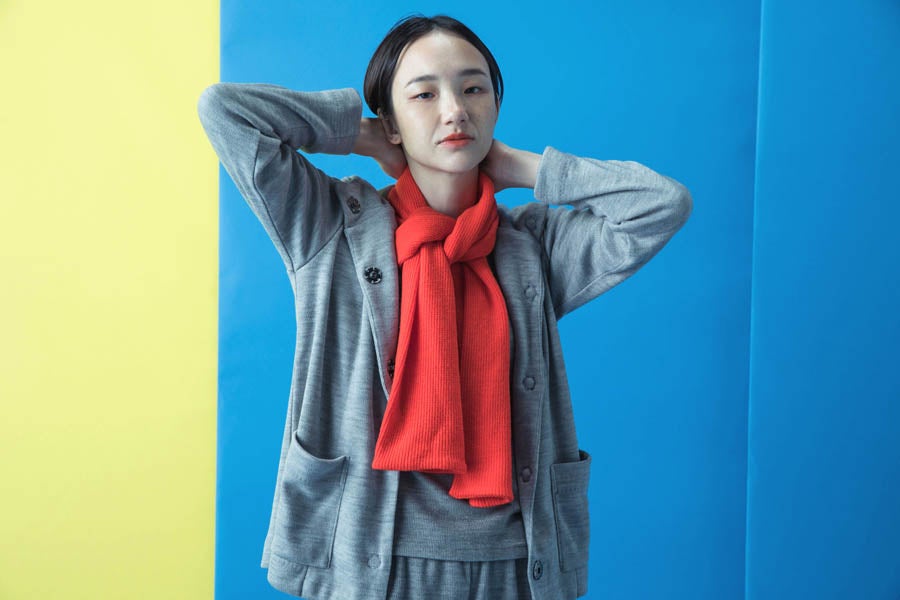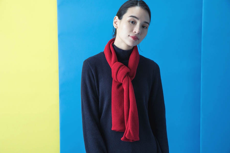 ミトンと同じ素材と色の、ふんわり軽いマフラーです。