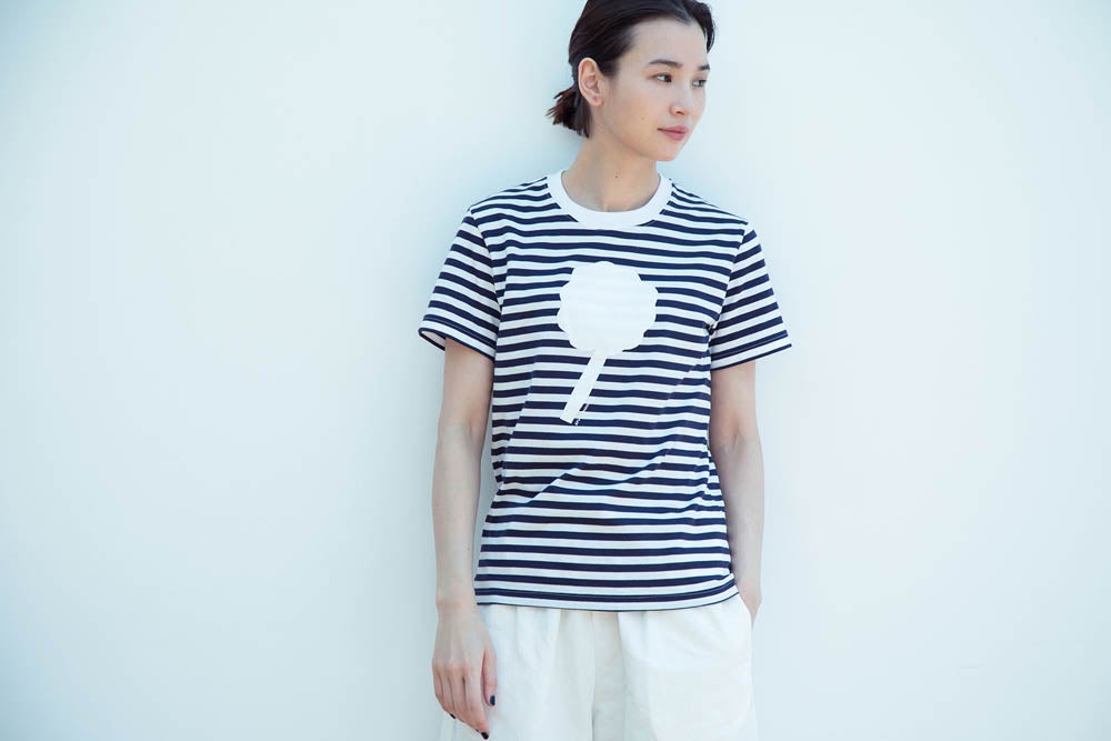 すこし詰まった襟ぐりと、内側に入った肩先、短めの袖。
