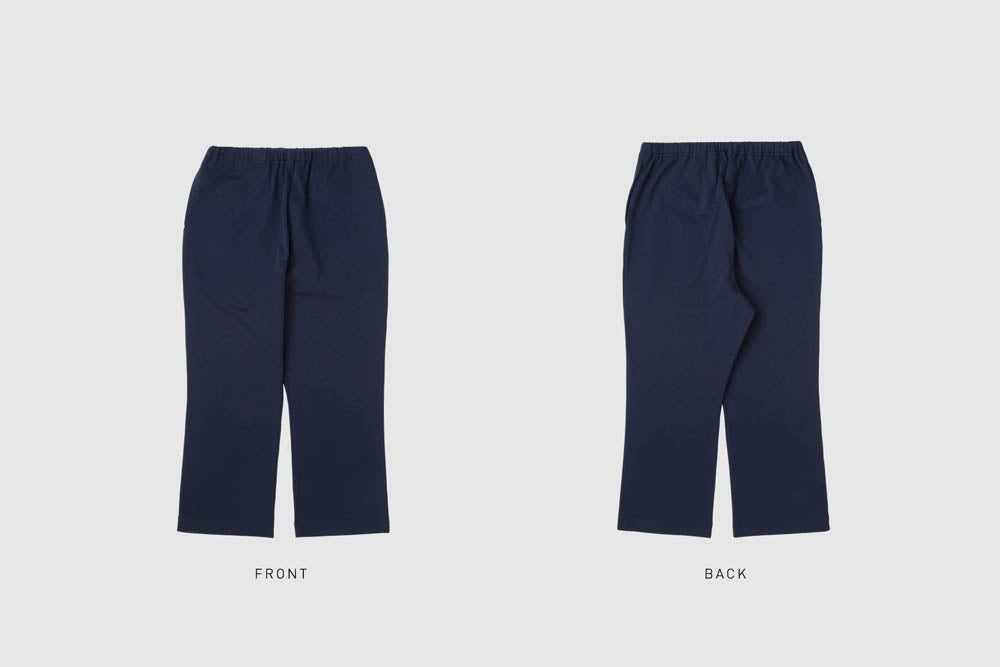 立ったり座ったりしても、膝が出にくい布地です。