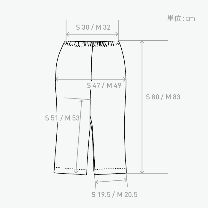 ウエストはゴム仕立てで、紐でも調整ができ、