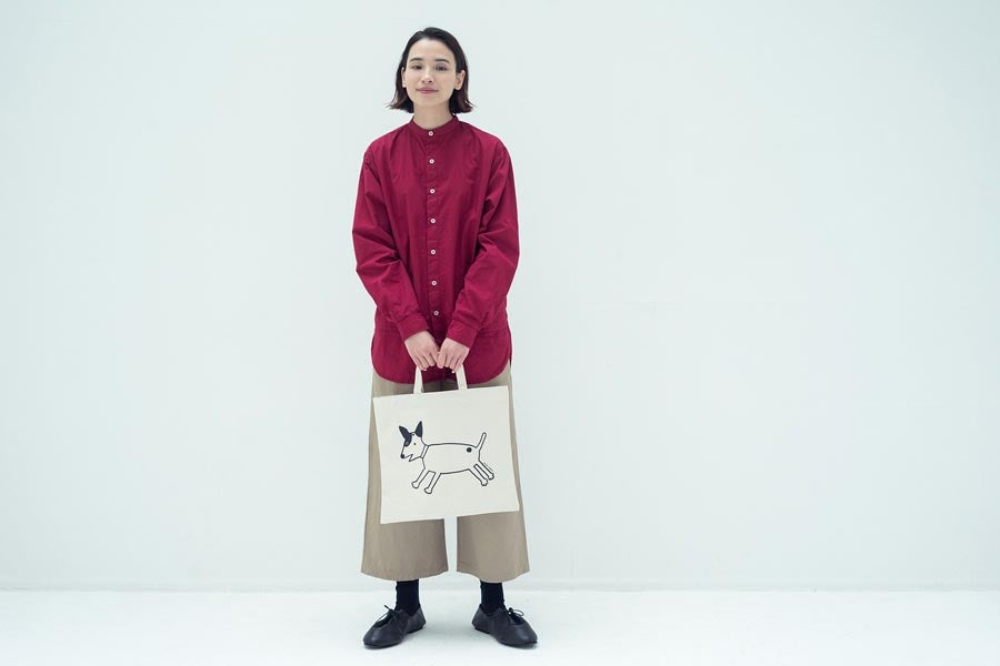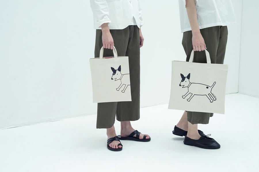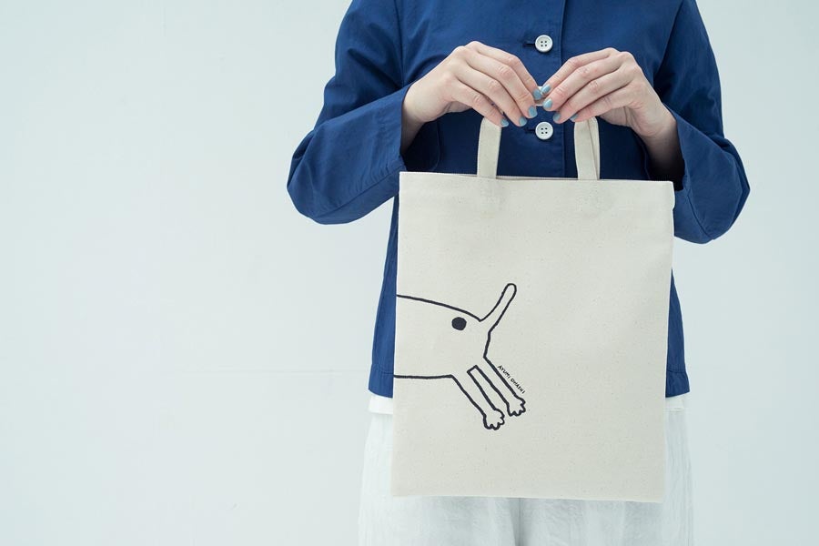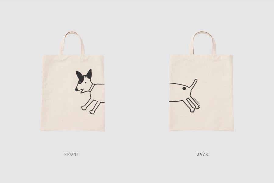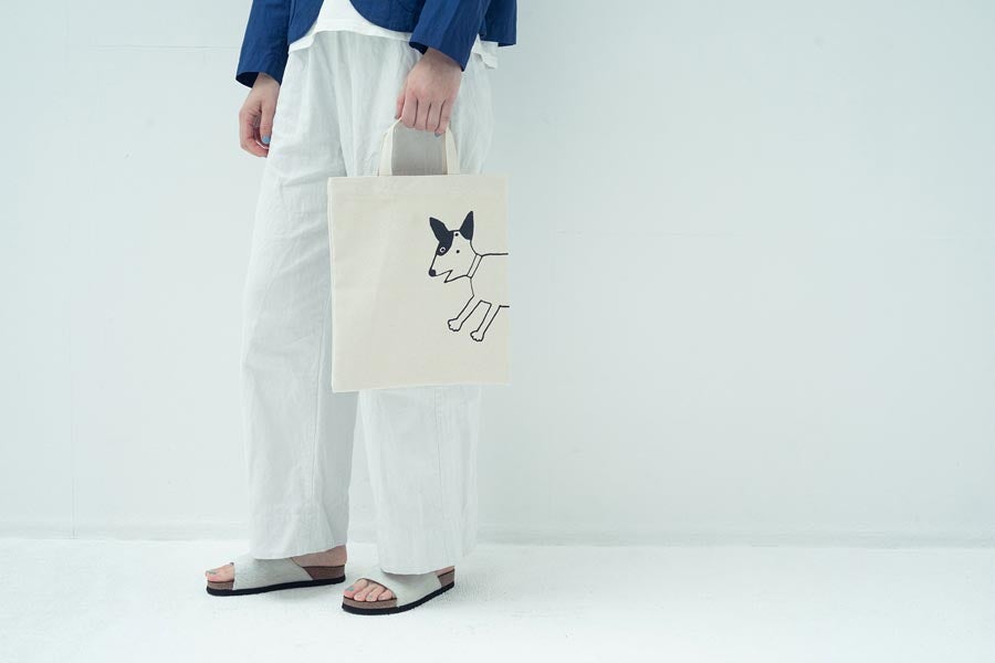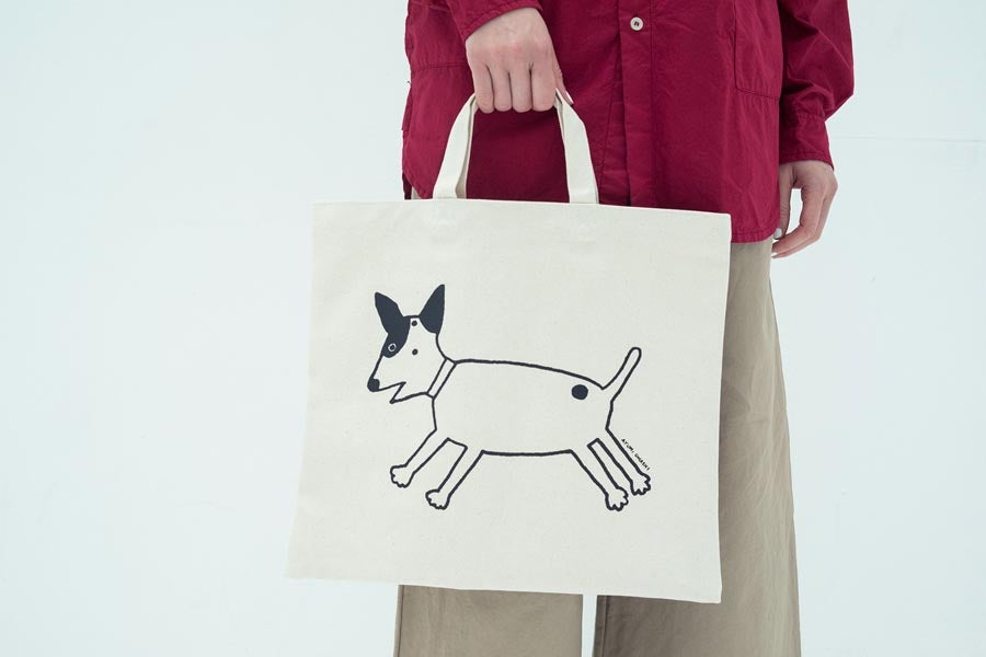 生成りの帆布のシンプルなトートバッグ。 プリントされているのは、 「ほぼ日」でおなじみ、 糸井重里の愛犬ブイヨンのすがたです。 描いたのは、もちろん、大橋歩さんです。