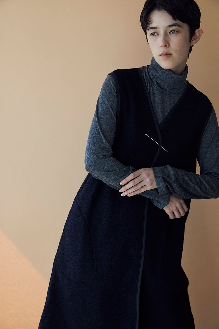 お手持ちのロングコートのインナーとしても、