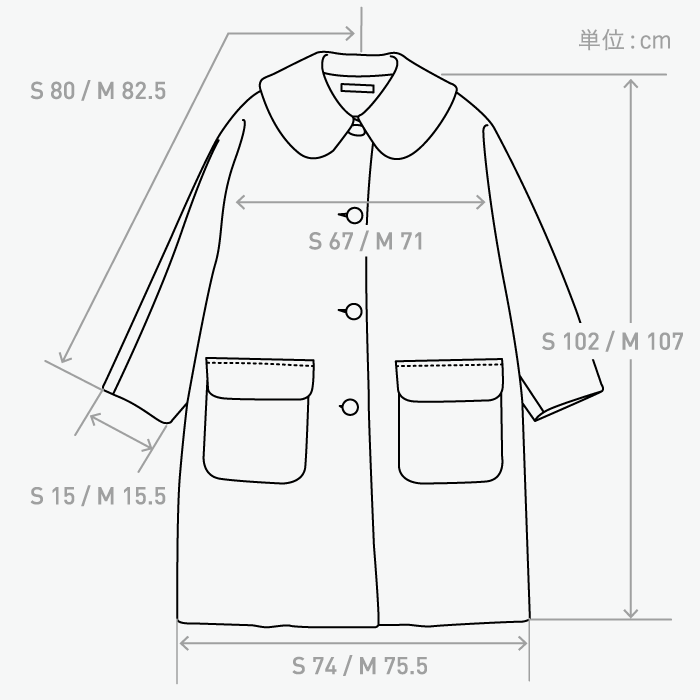 くるみボタン、ゆったりしたシルエット。
