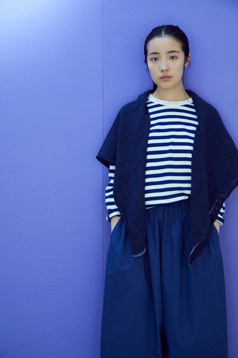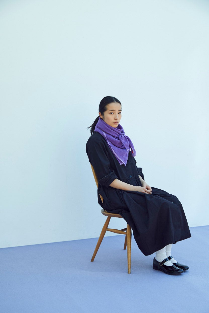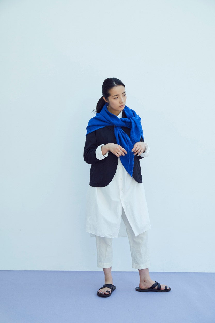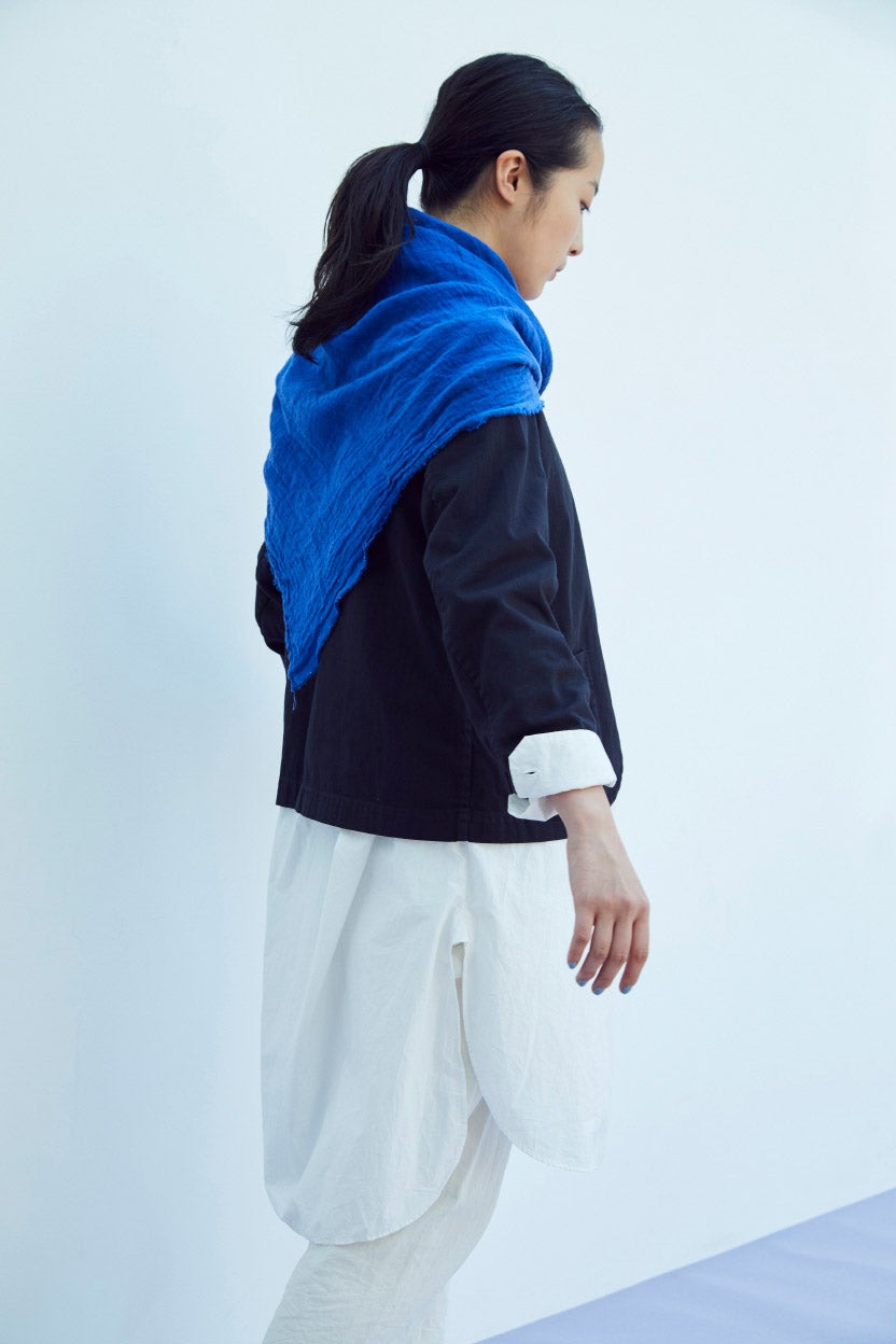 ましかくの大きな布は、ぐるぐると首もとに巻いたり、