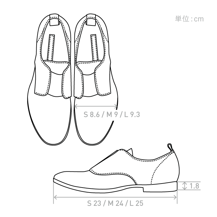 サイズは、革ひも靴と同じ3サイズの展開。
