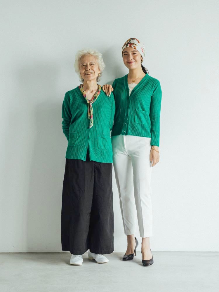 今年のモデルは、カシミヤカーディガンとプルオーバー。