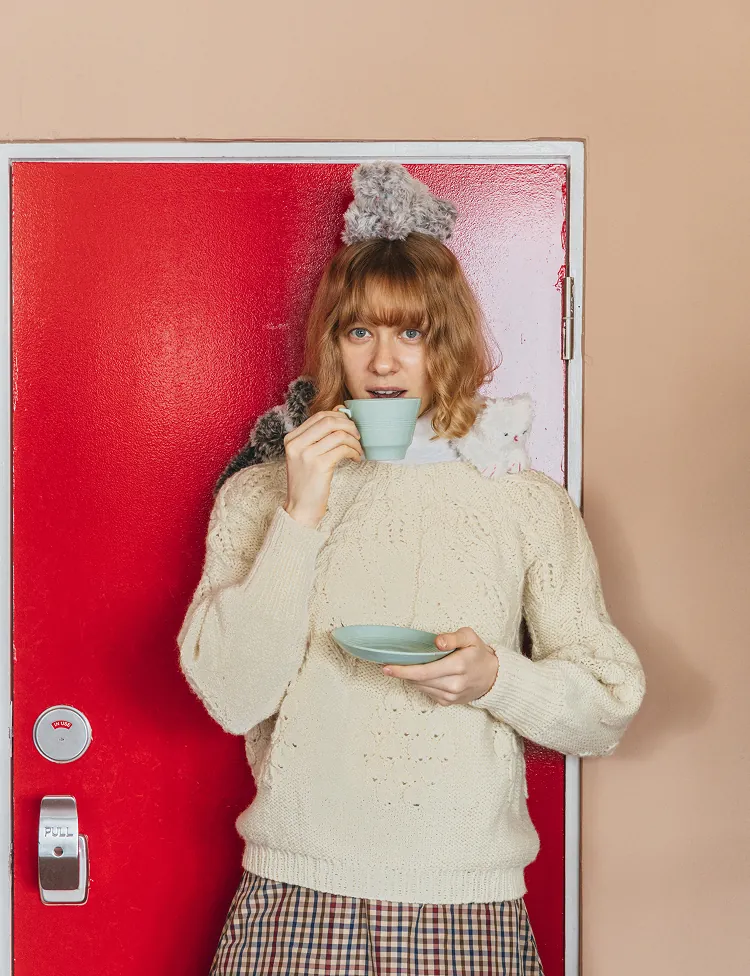ナポリタンも頼んで、食べて、またしばらく編む。