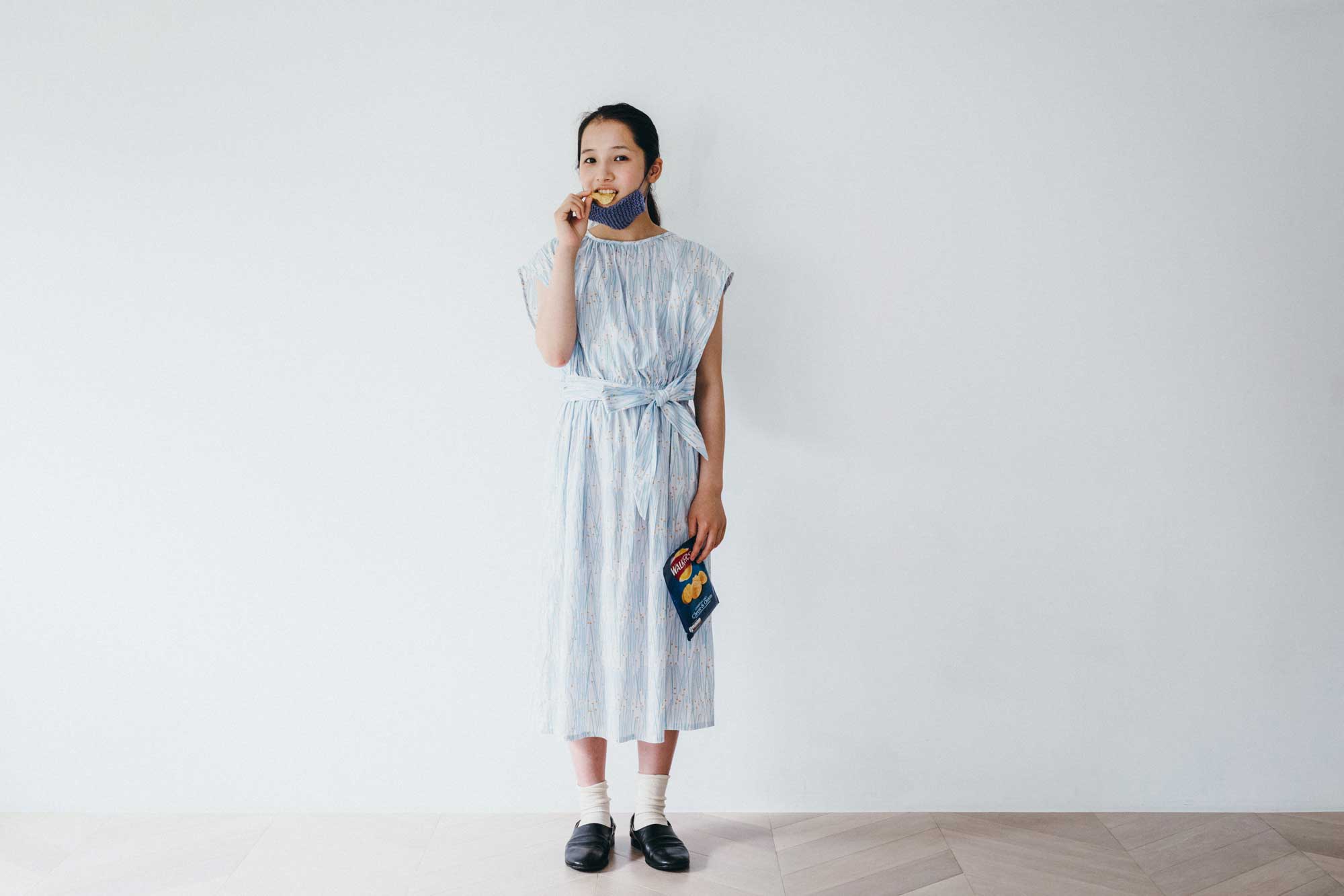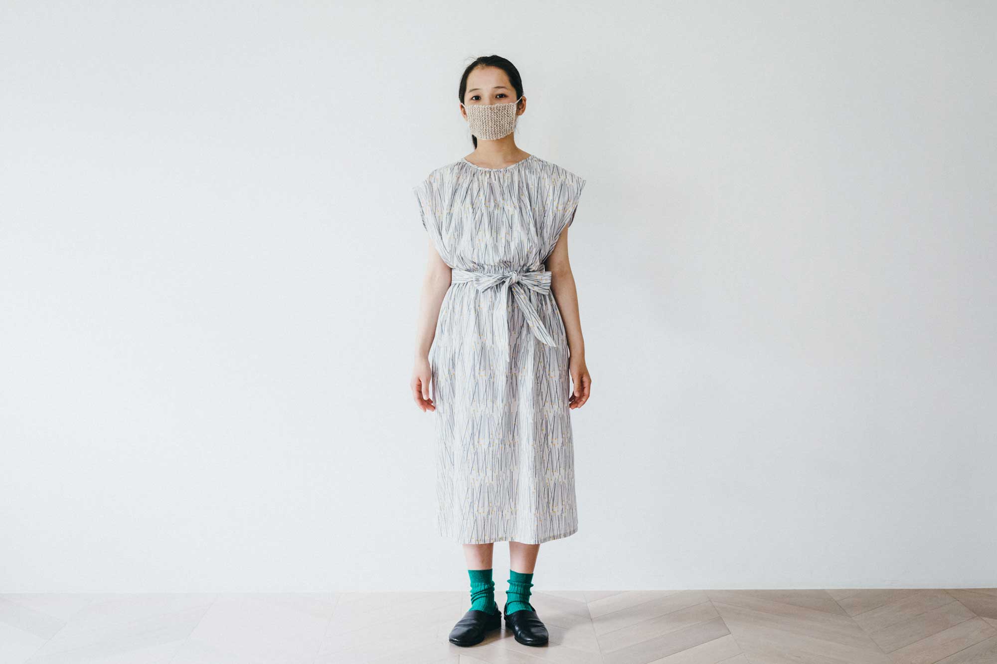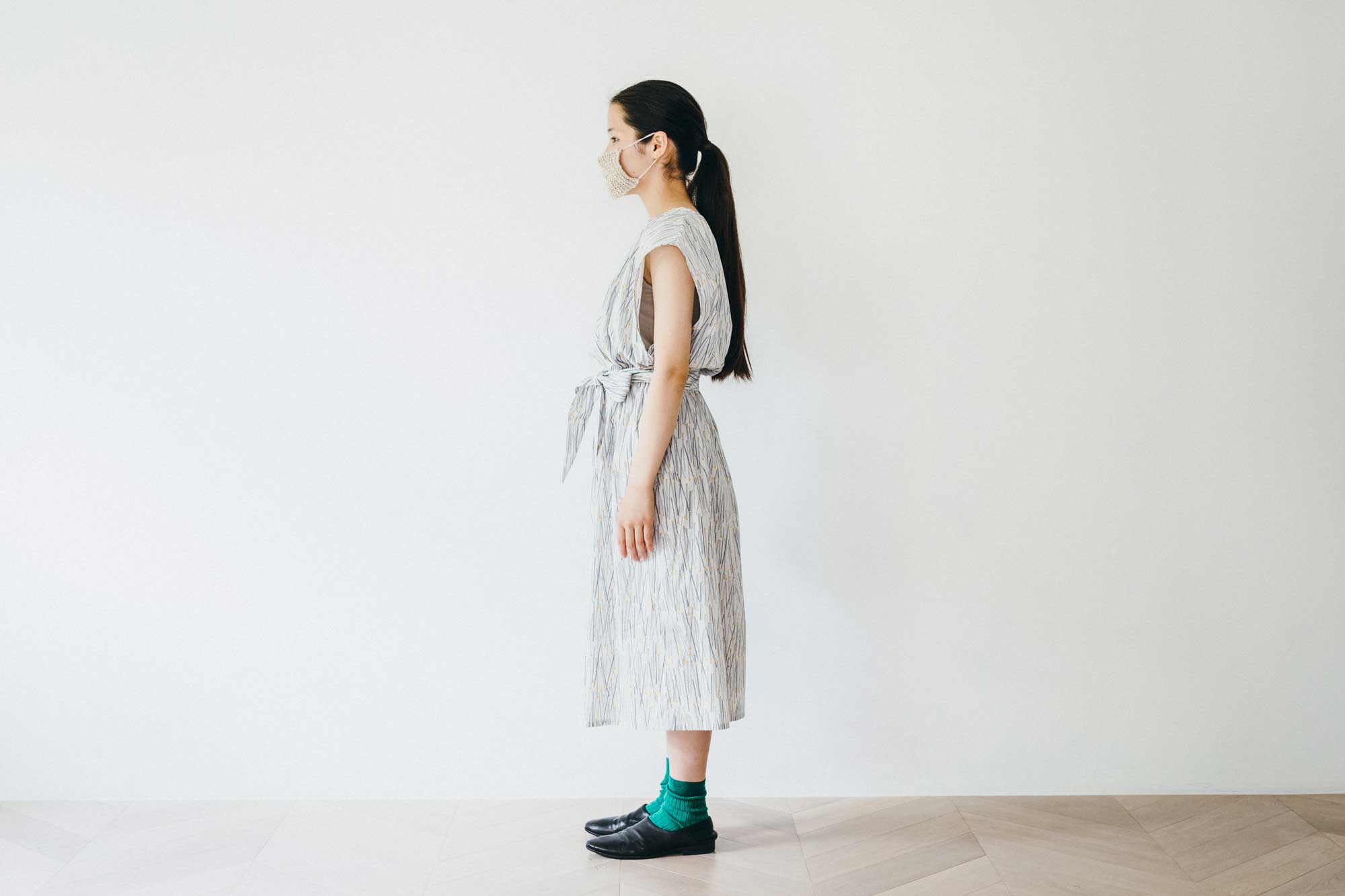 裾は膝下丈のやわらかいシルエット。