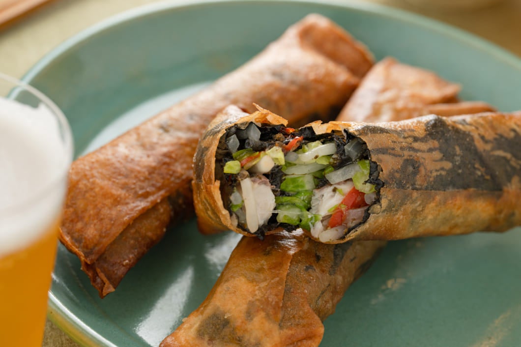 鯵と野菜の海苔はるまき~梅肉ソース添え~