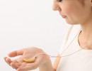 首からかけるペンダントタイプです。 男女兼用です。 ひもの色は、どの洋服にも合うように、 ページュをえらびました。