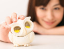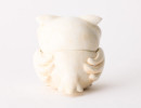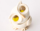 石膏粘土でつくられた、 楽しく飾って楽しく使える砂時計。 首を横に倒すと、 ふくろうの目の中の砂が落ち、 時をはかるという作品です。