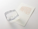 ガラスでできたはんこ。 はんこの柄は、 一点、一点、すべて異なります。 雪の結晶、街の風景、水玉模様など、 作者が思いつくままに、 かわいいと思う柄や、 きれいだと思う柄を掘っています。