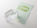 ガラスでできたはんこ。 はんこの柄は、 一点、一点、すべて異なります。 雪の結晶、街の風景、水玉模様など、 作者が思いつくままに、 かわいいと思う柄や、 きれいだと思う柄を掘っています。