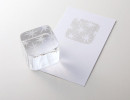 ガラスできているので、 光の反射で、模様が映り込むのも魅力です。 はんことしてだけでなく、 いろんな表情が見えるオブジェとして 飾っていただくのも、おすすめです。