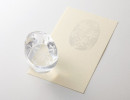 ガラスできているので、 光の反射で、模様が映り込むのも魅力です。 はんことしてだけでなく、 いろんな表情が見えるオブジェとして 飾っていただくのも、おすすめです。
