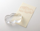 ガラスでできたはんこ。 はんこの柄は、 一点、一点、すべて異なります。 雪の結晶、街の風景、水玉模様など、 作者が思いつくままに、 かわいいと思う柄や、 きれいだと思う柄を掘っています。