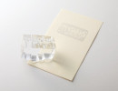 ガラスでできたはんこ。 はんこの柄は、 一点、一点、すべて異なります。 雪の結晶、街の風景、水玉模様など、 作者が思いつくままに、 かわいいと思う柄や、 きれいだと思う柄を掘っています。