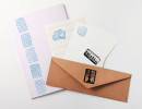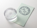 ガラスでできたはんこ。 はんこの柄は、 一点、一点、すべて異なります。 雪の結晶、街の風景、水玉模様など、 作者が思いつくままに、 かわいいと思う柄や、 きれいだと思う柄を掘っています。