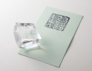 ガラスできているので、 光の反射で、模様が映り込むのも魅力です。 はんことしてだけでなく、 いろんな表情が見えるオブジェとして 飾っていただくのも、おすすめです。