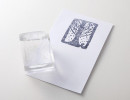 ガラスでできたはんこ。 はんこの柄は、 一点、一点、すべて異なります。 雪の結晶、街の風景、水玉模様など、 作者が思いつくままに、 かわいいと思う柄や、 きれいだと思う柄を掘っています。