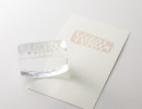 ガラスでできたはんこ。 はんこの柄は、 一点、一点、すべて異なります。 雪の結晶、街の風景、水玉模様など、 作者が思いつくままに、 かわいいと思う柄や、 きれいだと思う柄を掘っています。