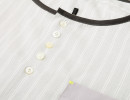 作者のコメント: オーソドックスなワイシャツをベースに、 エプロンには、インドネシアの手織りの布をあわせました。 後ろのベルトは、シャツのカフスです。 すごい単純なんですけど、みなさん、 気づいたときに、おぉ! っておっしゃいますね(笑)。