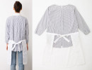 作者のコメント: エプロンにもシャツを使っていて、 ポケットは、シャツのカフスの部分です。 たまたま思いついてやってみたことなんですが、 袖口にタックが入っているおかげで、 ものが入れやすいという発見がありました。