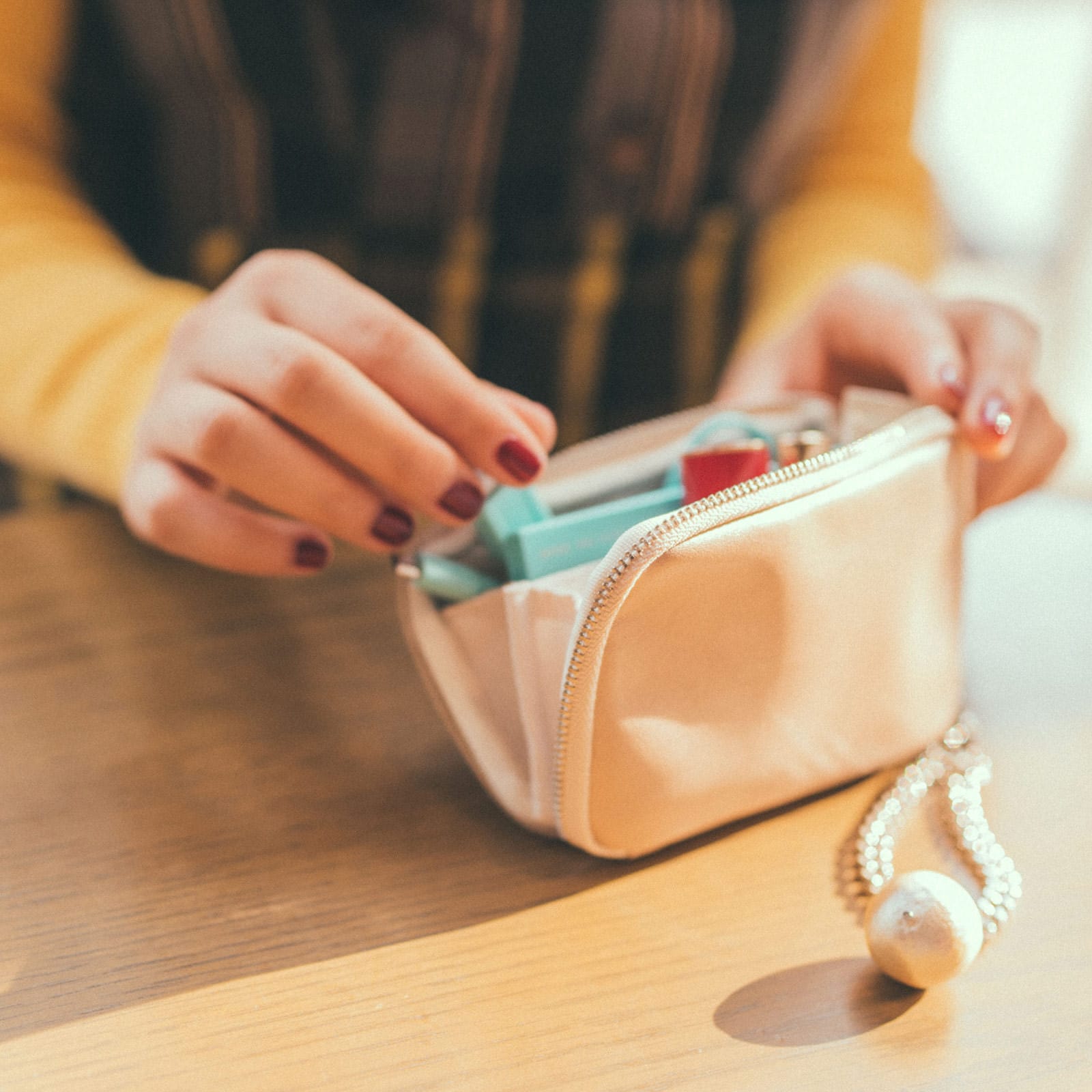 ポーチは収納物を衝撃から保護することを保証するものではありません。特にスマートフォン等の電子機器にご注意ください。