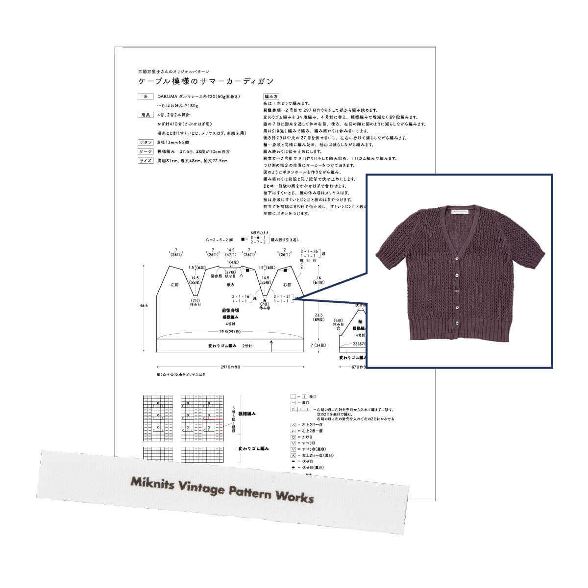(編み図・基本の編み方・ケーブル模様のサマーカーディガンの編み方)