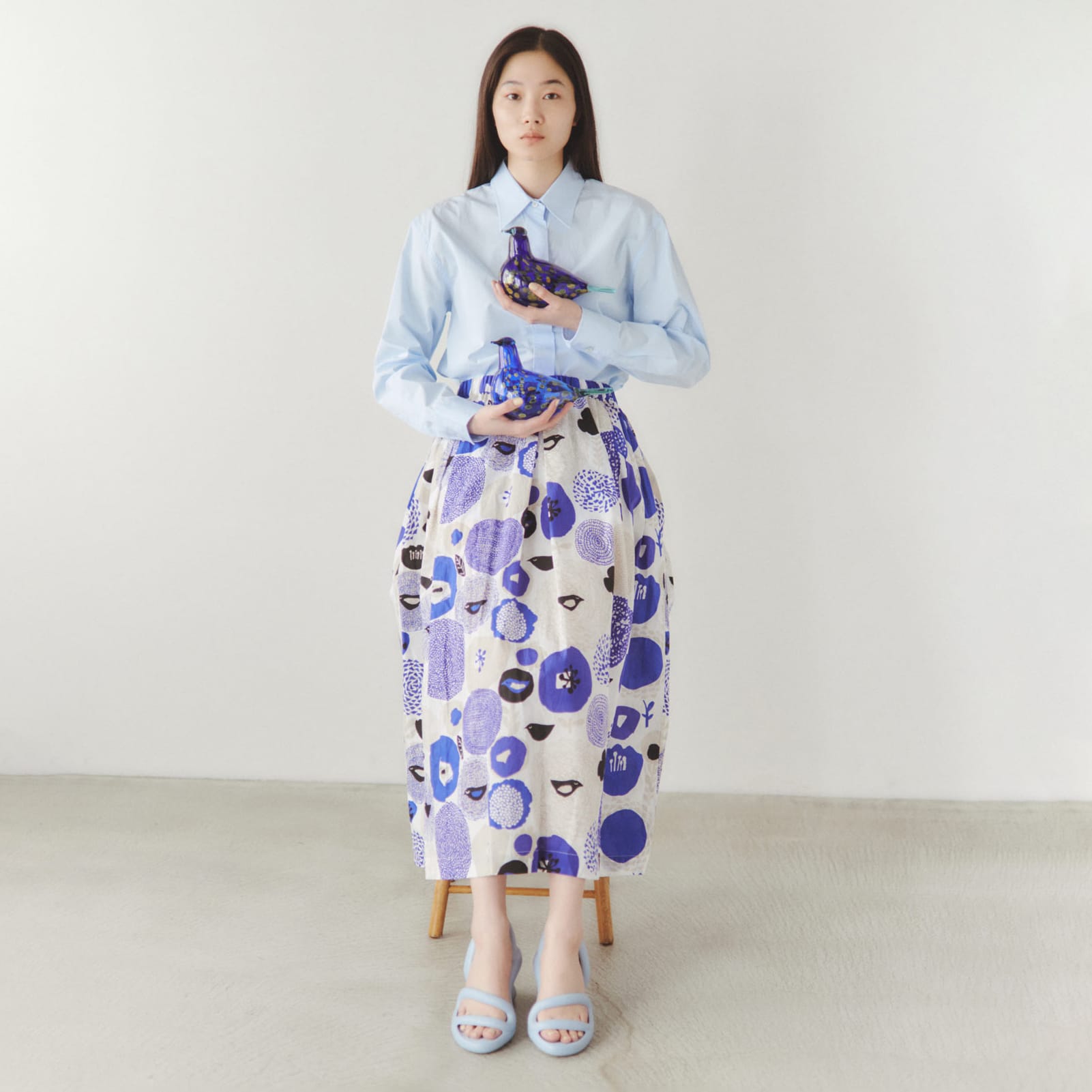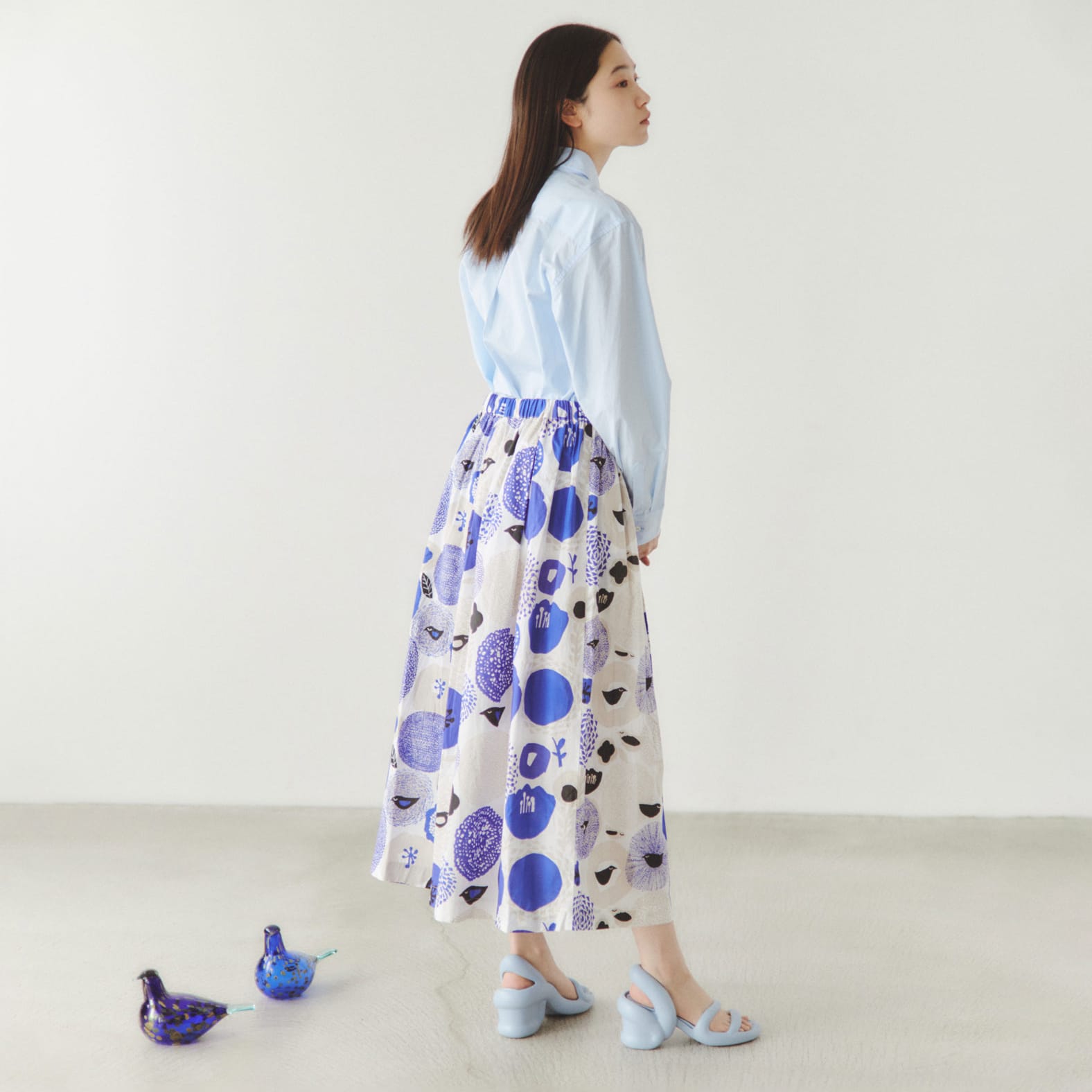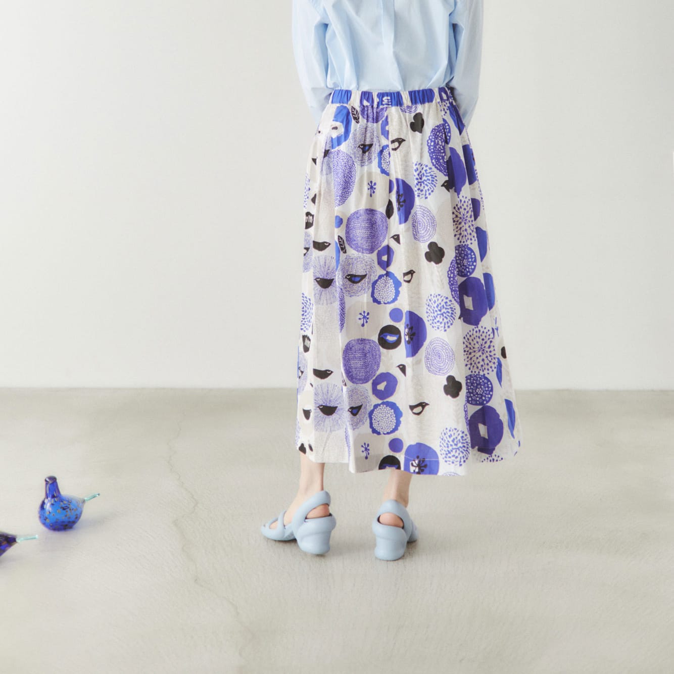 長めの着丈で、柄そのものをまとう感覚のスカート。