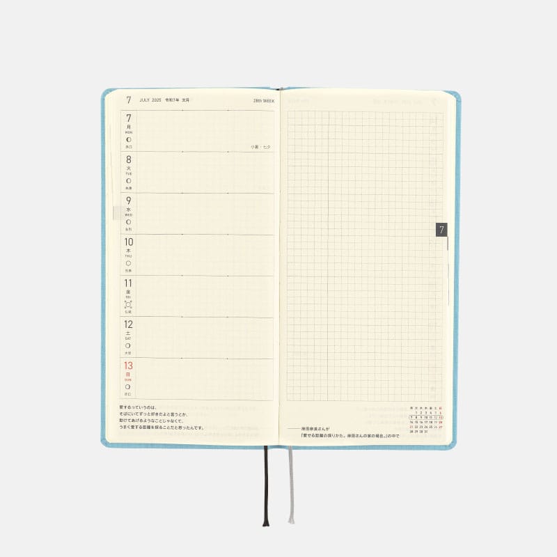 左ページは週間予定、右ページは方眼メモの