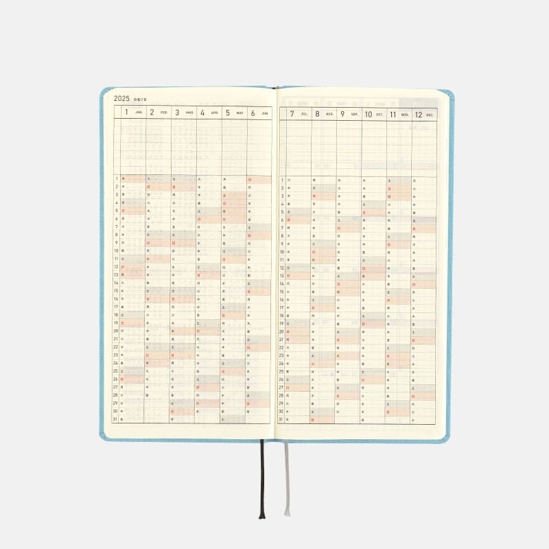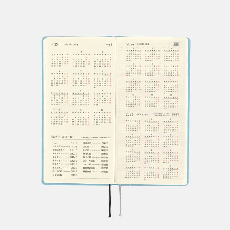表紙の年号の箔押しの文字は、日々お使いいただくうちにはがれることがあります。強くこすらないようご注意ください。