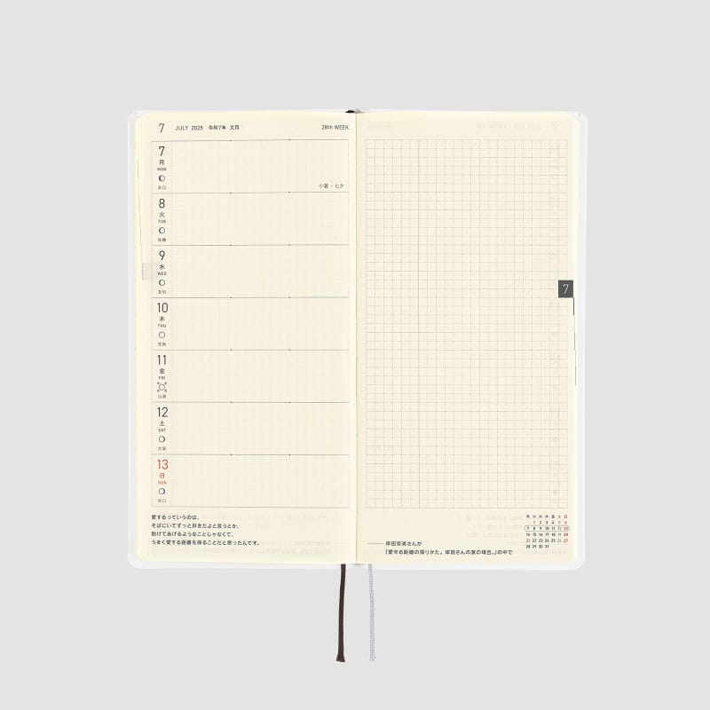 左ページは週間予定、右ページは方眼メモの