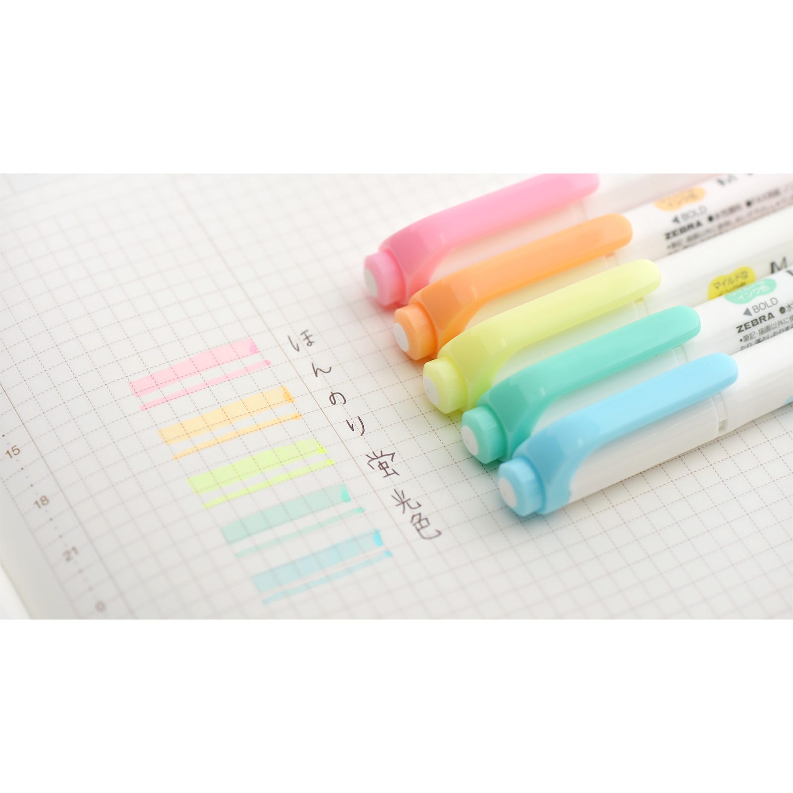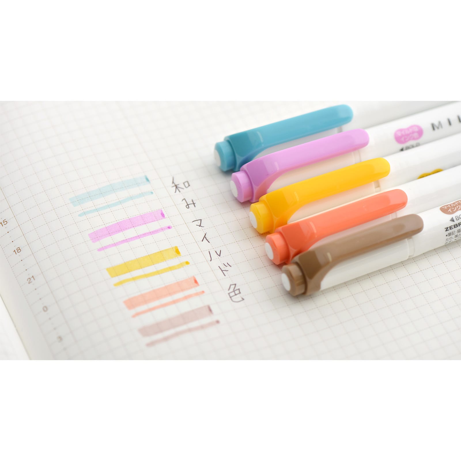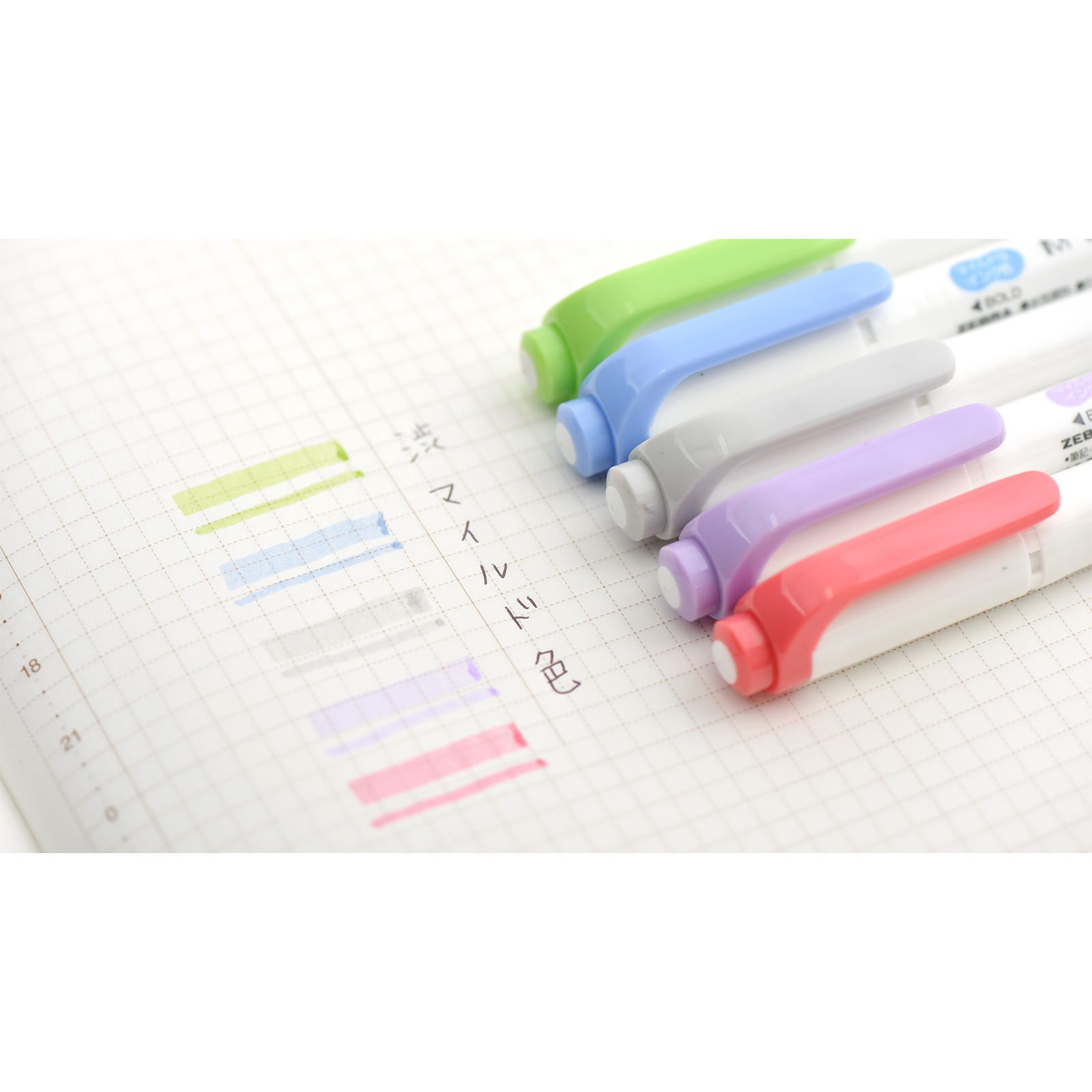 従来の蛍光ペンにくらべ、淡い色を選んでいるため