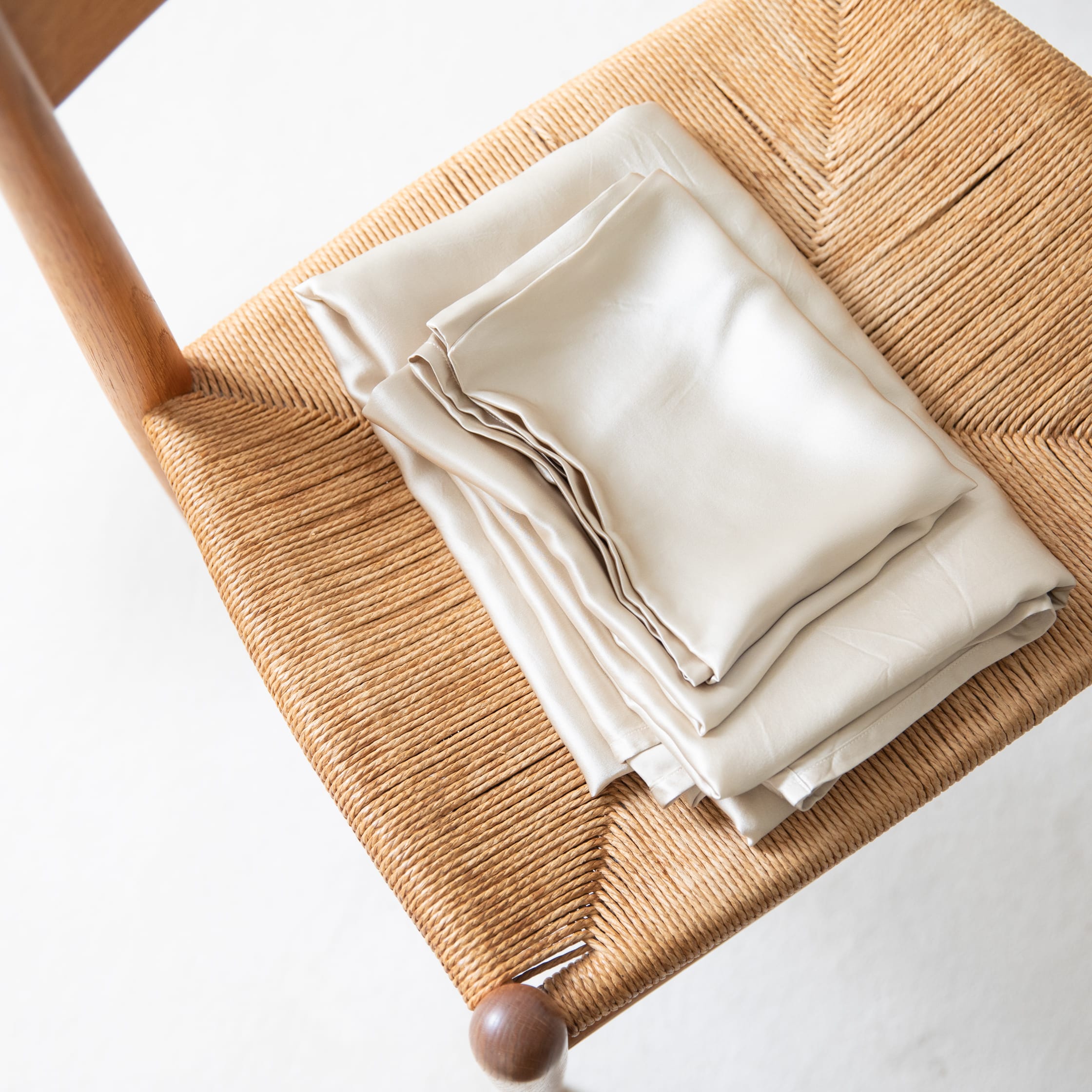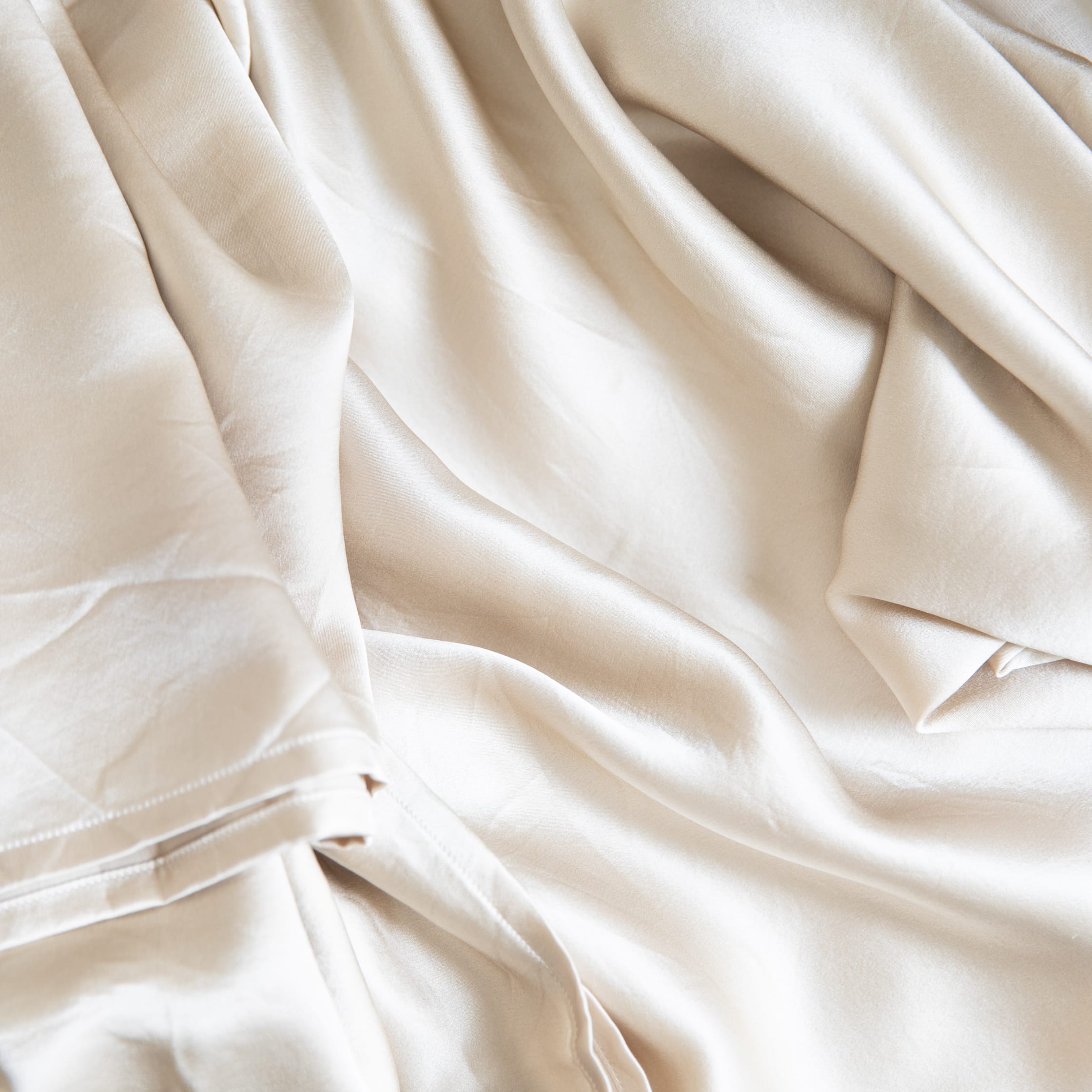 お洗濯は、中性洗剤をご使用いただき、必ず洗濯ネットに入れて弱水流のコースで、脱水は数十秒、ヌレ干しがおすすめです。また、サテン織物は、裏返しにすることで表面が傷つくことを防ぎやすくなります。