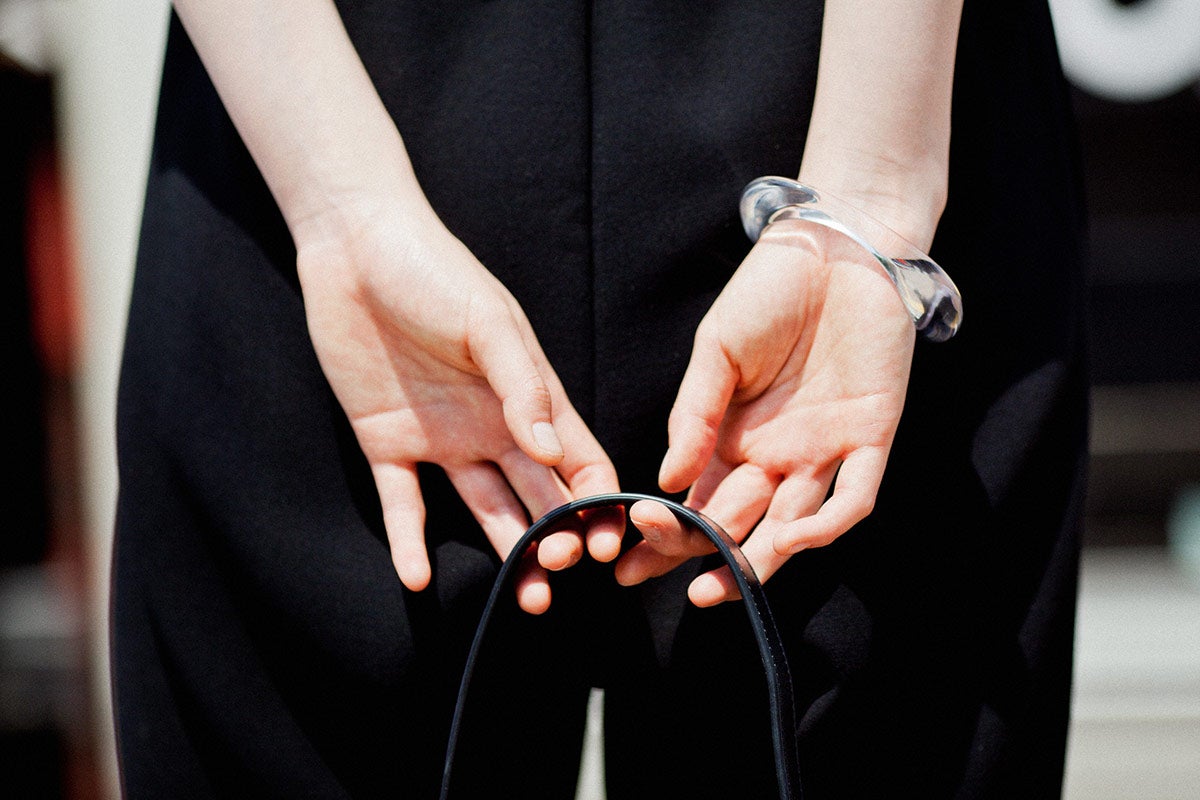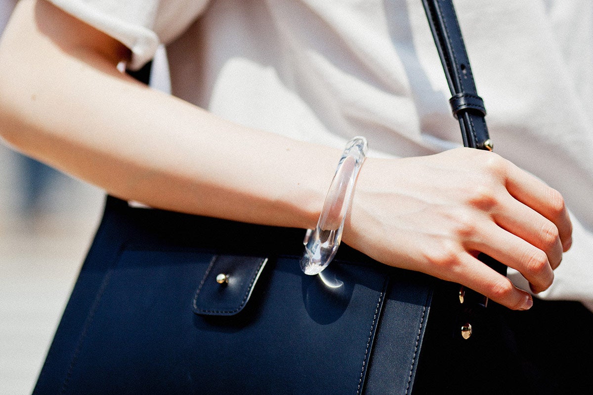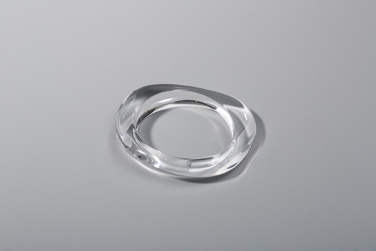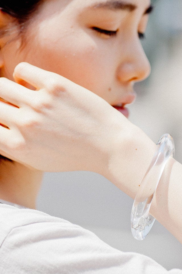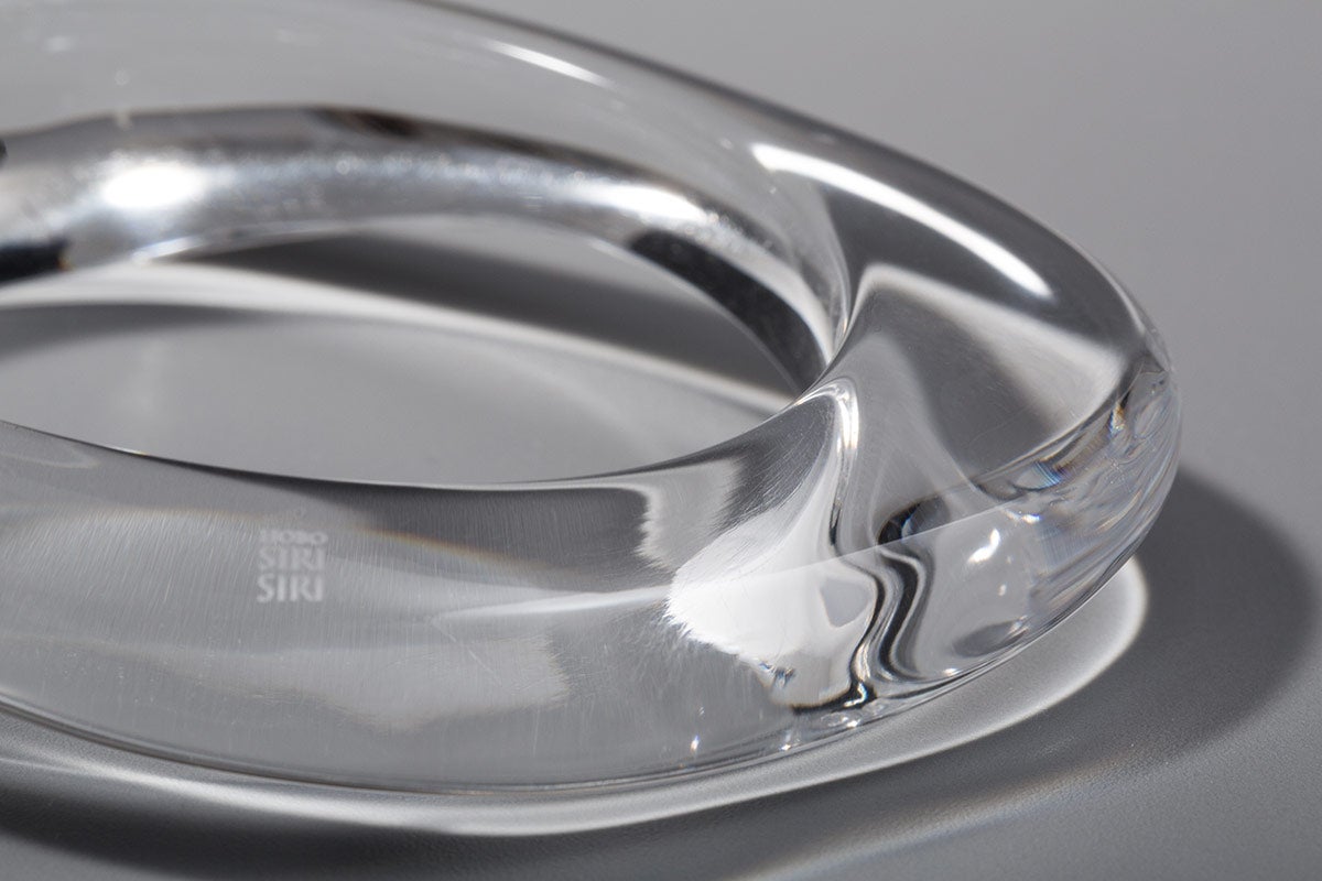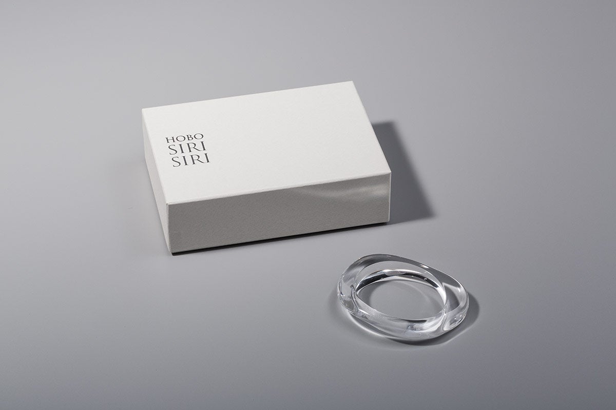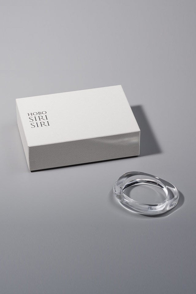 SIRI SIRIのデザイナーである岡本菜穂さんが ブライトン(Brighton)の海岸でひろった石を、 3Dスキャンしてかたちをつくり、バングルにしました。 つけるだけでコーディネイトの雰囲気がぱっと変わる、 これぞスポットジュエリーといえる逸品です。 高品質な国産アクリルを使用しているため、 ジュエリーとして、とても美しく仕上がっています。 また、見ため以上にかるく、傷もつきにくく、 気がねなく身につけていただけます。 「HOBO SIRI SIRI」のレーザー刻印が、ちいさく入ります。
