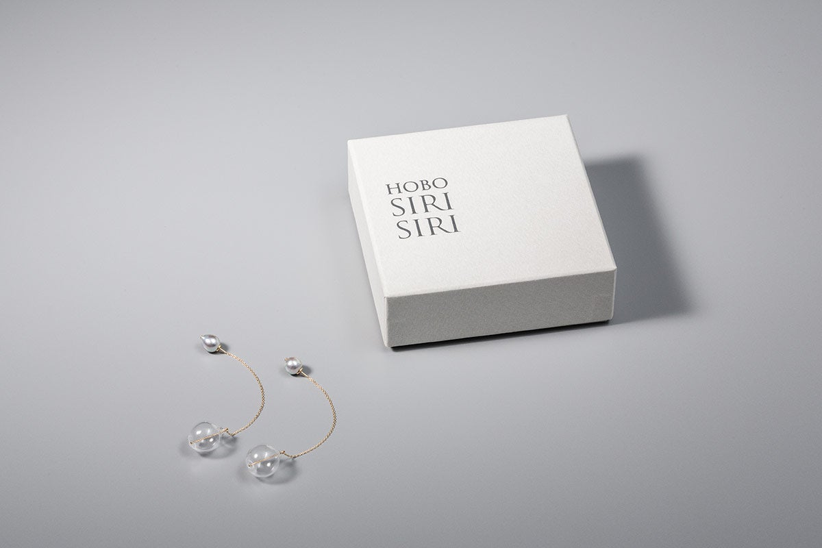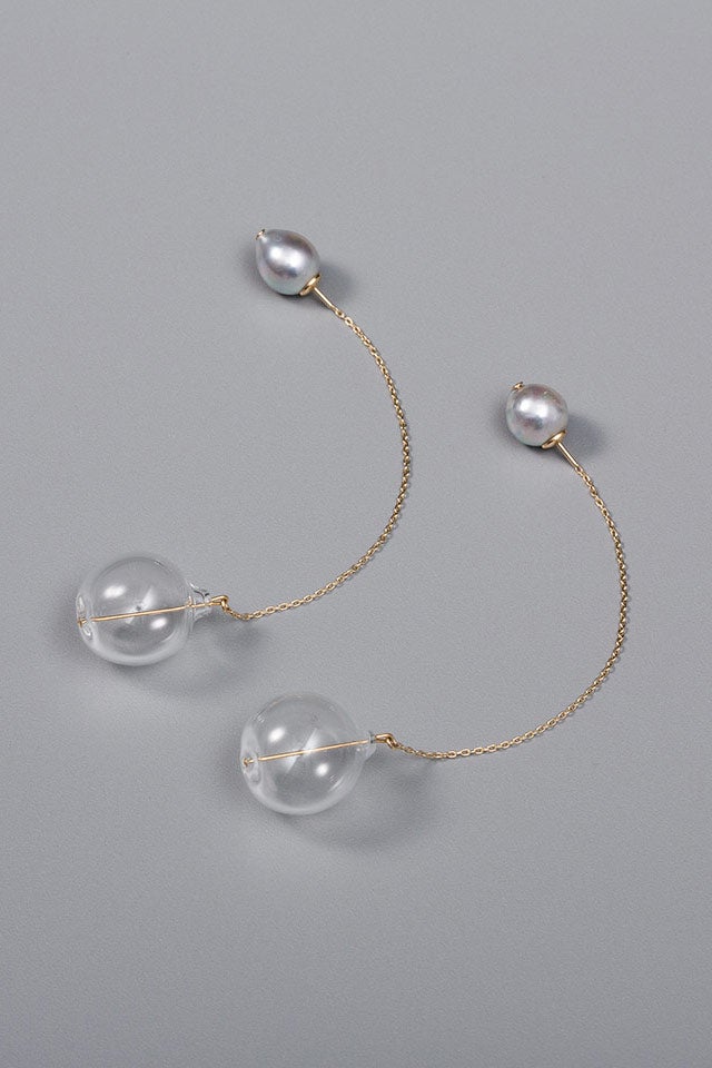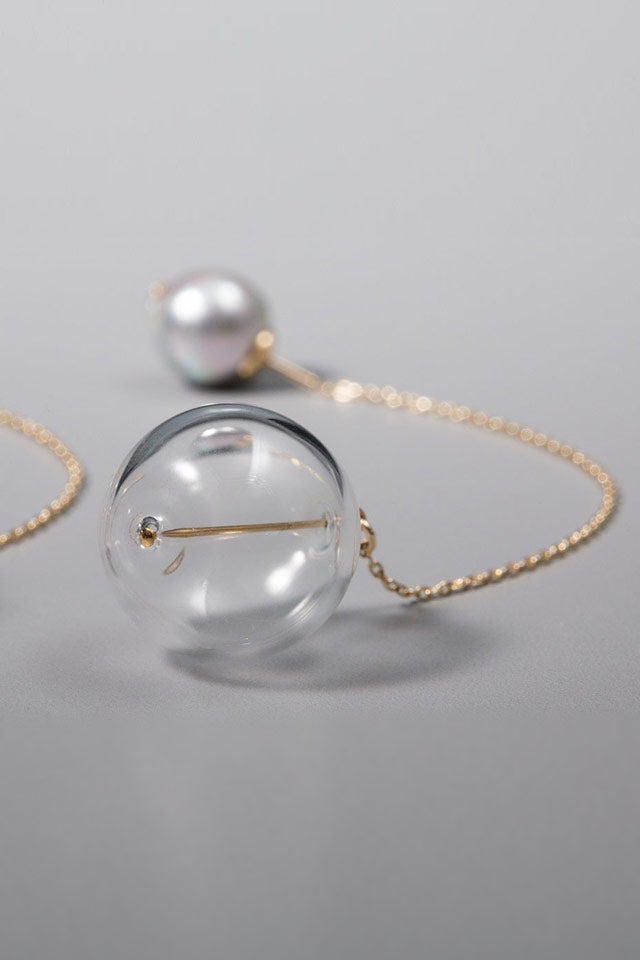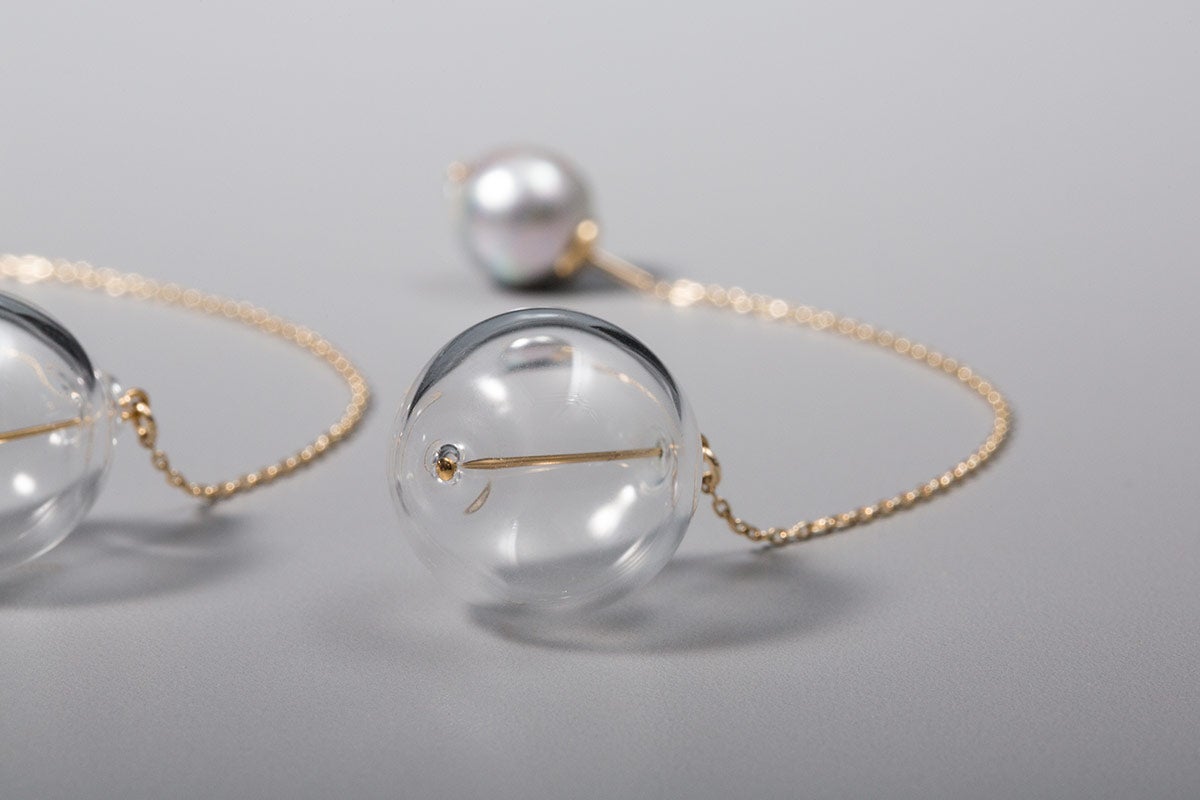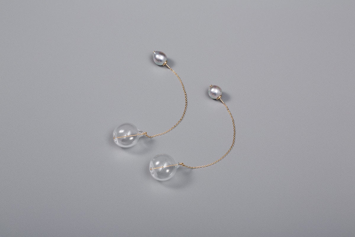 ナチュラルグレーの無調色パールとバルーン型のガラスを、