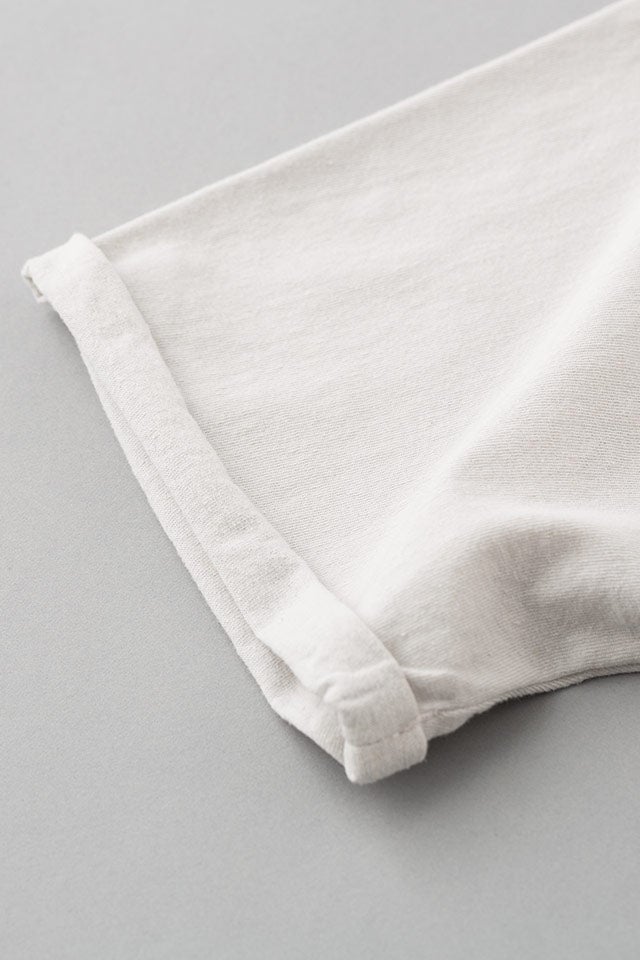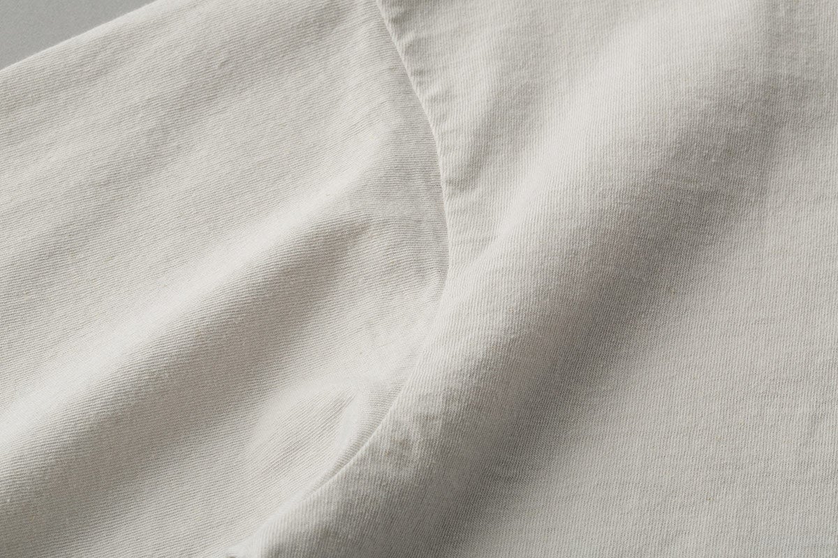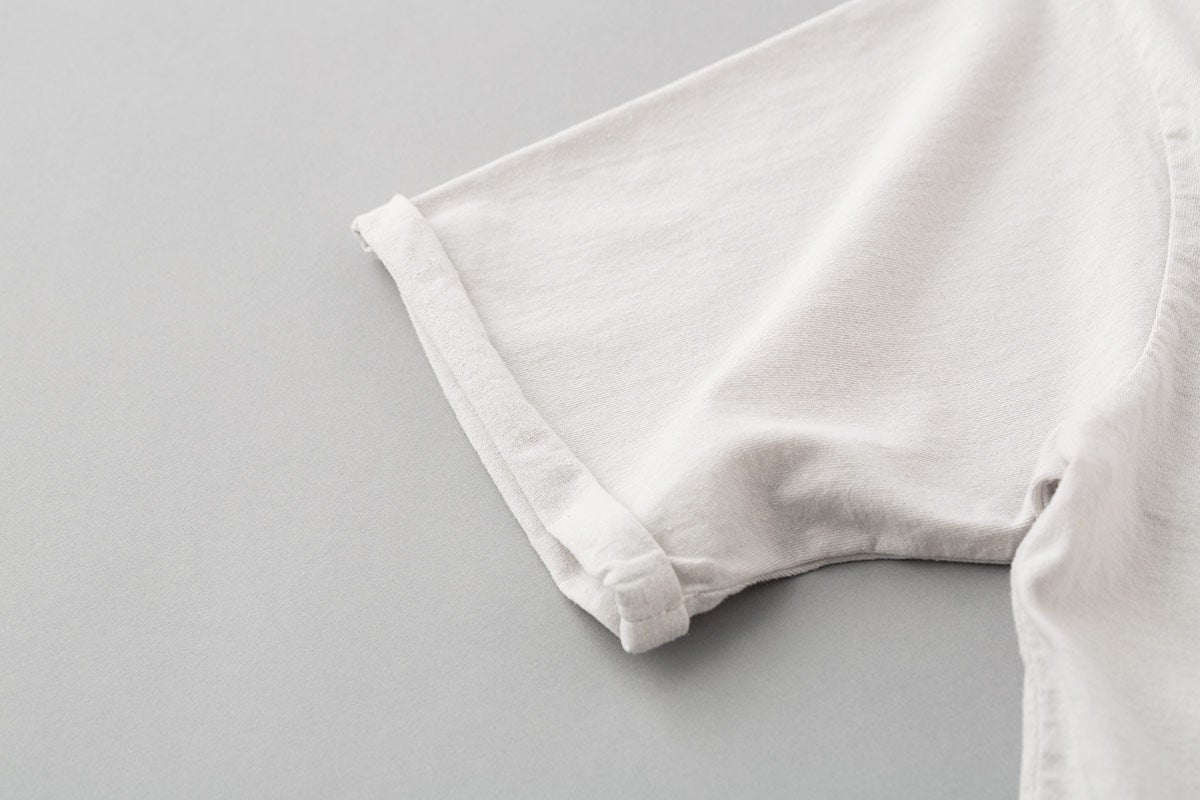 Tシャツではめずらしい綿麻の混紡素材に、