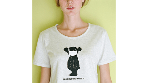 「こわくないくまのパンや」のスタッフが着るユニフォームTシャツには、昼用と夜用があります。昼用のボディは、ふっくらしたパンを連想させるオートミール色。2種類あるデザインのうち、〈たたずむくま〉は、「誤解されやすいくま」のすがたが、胸に大きくあしらわれています。細めの糸をきれいに編み立ててあるので、なめらかな着ごこちをたのしめます。ユニフォームとはいっても、なかなかぜいたくなのです。