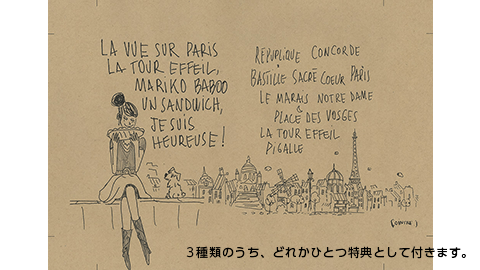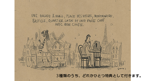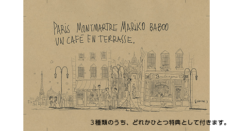 「ほぼ日ストア」、または9月に予定しているTOBICHI2での発売記念イベント、とのまりこさんのお店「BOITE」などで購入すると、イラストを描いたジェロームさんのすてきな絵のついた文庫用ブックカバーをお付けします。