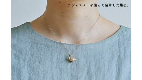 チェーンには、ネックレスの長さを調節できるアジャスター・リングが付いています。