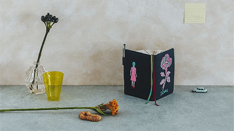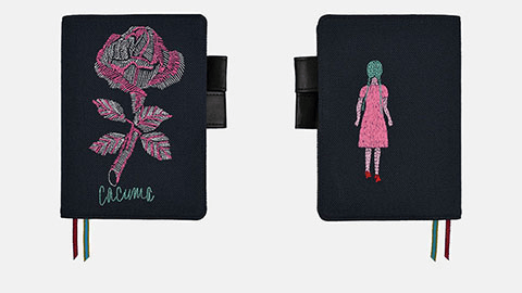 「キギ」の渡邉良重さんと「ほぼ日」がいっしょに作る洋服ブランド、「CACUMA」の手帳カバーが登場しました。良重さんが「自分で持つなら‥‥」と思い浮かべながらモチーフに選んだのは、凛と咲く1本のバラと、ワンピースを着た女の子の後ろ姿。手描きの原画をもとに、独特の色使いや繊細なタッチを刺繍で忠実に表現することにもこだわりました。上質でおしゃれな「CACUMA」の世界観をたっぷりと味わえます。