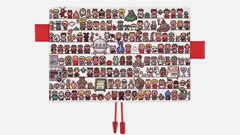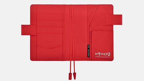 糸井重里がシナリオを手がけた1994年発売のスーパーファミコン用ソフト『MOTHER2 ─ギーグの逆襲』のコラボレーションカバーです。『MOTHER2』の登場人物たちがずらりと勢ぞろいしている様は壮観です。メインキャストたちはもちろん、バルーンモンキーやアンドーナッツ博士、グミぞく、あなぬけネズミ、トンズラブラザーズ、アップルキッド、スロットブラザーズ、アンブラミなどなど、ナイスな脇役たちの姿もたくさん見つけることができます。そのほか、ホテルの看板や魔境の電話、ゴミばこなどまで登場。内側の色は『MOTHER』らしい明るいレッド。端には『MOTHER2』のロゴが白でプリントされています。ゲーム中のシーンを振り返りながら、いろいろな思いに浸れるカバーです。