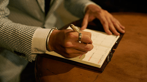 カードポケット(内左側に3つ、右側に2つ)/パスポートやチケットをはさめるコーナーポケット(1つ)/大きなポケット(1つ)/ペン挿し用のくぼみ(1つ)