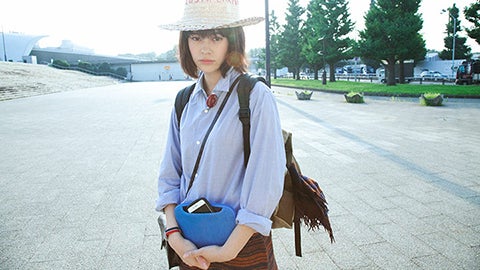 素材の「ネオプレン」は、ダイビング用のウエットスーツに使われる合成ゴムです。軽量でやわらかく、弾力性があり、立体的なシルエットが特長です。外側のポケットには「iPhone6 Plus」サイズのスマートフォンがすっぽり入ります。