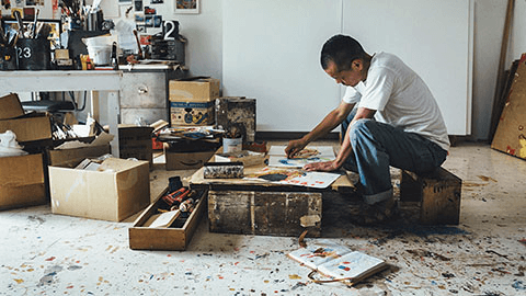 「NATURALE」に使われている無着色のヌメ革は、使うほどに色と艶が増し、飴色になっていきます。そのさまは、アンリさん自身が「マジック」と表現するほど。さわやかな水色のステッチがちょうどいいアクセントになっています。