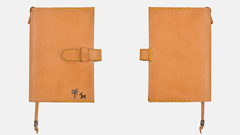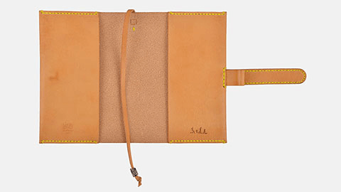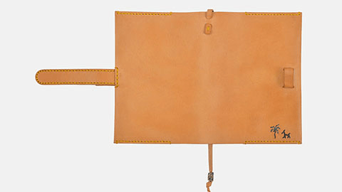 4色のなかでいちばんはっきりとした経年変化をたのしめる無着色のヌメ革、「NATURALE」。人の手に触れるたび、飴色が濃くなり艶が増していきます。ステッチは革の色に馴染むイエロー。刺繍は犬と木のモチーフです。