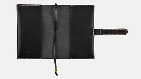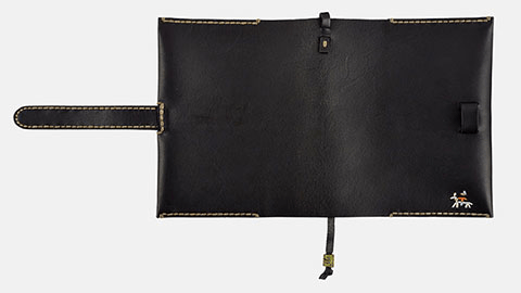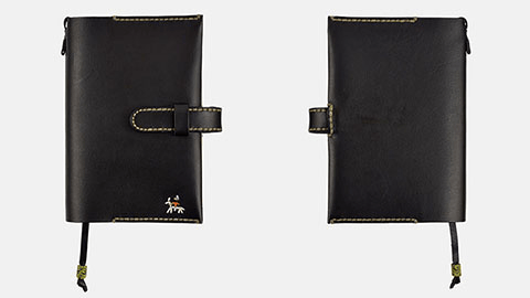 黒革の手帳カバーといえばシックなイメージですが、「NERO」は馬に乗った人の刺繍や、太めのステッチにより、どこかかわいい印象もあります。それでいて大人のかたにもよく似合う、魅力的で存在感のあるカバーです。